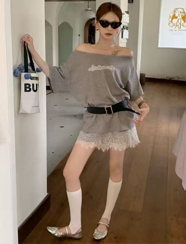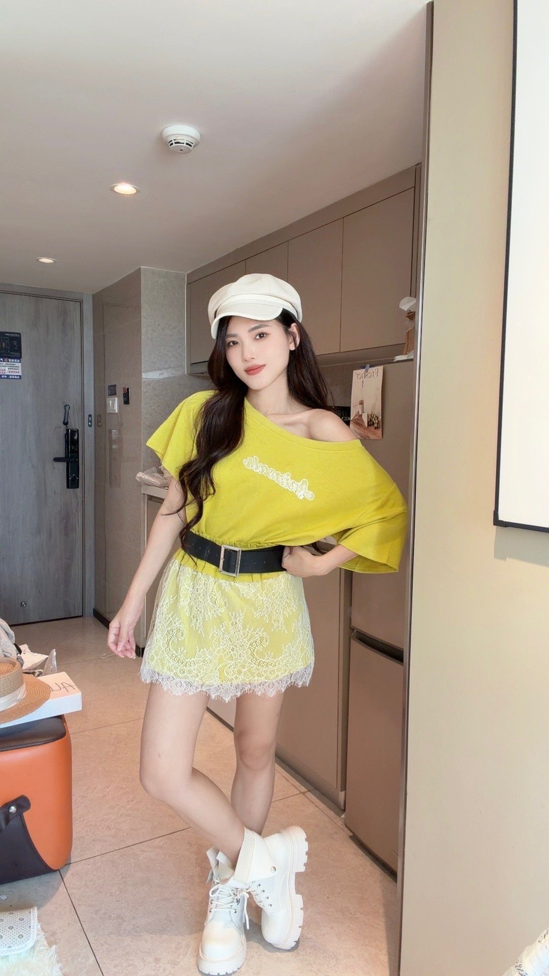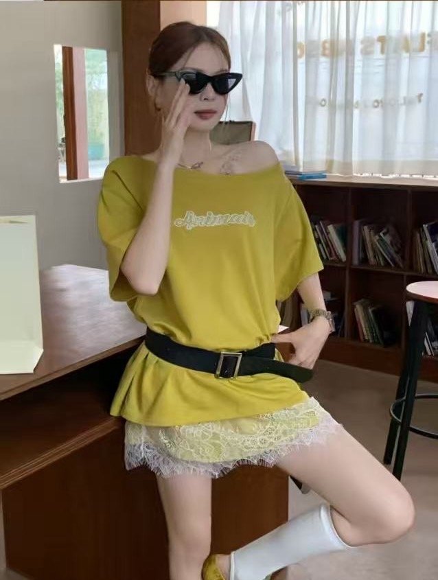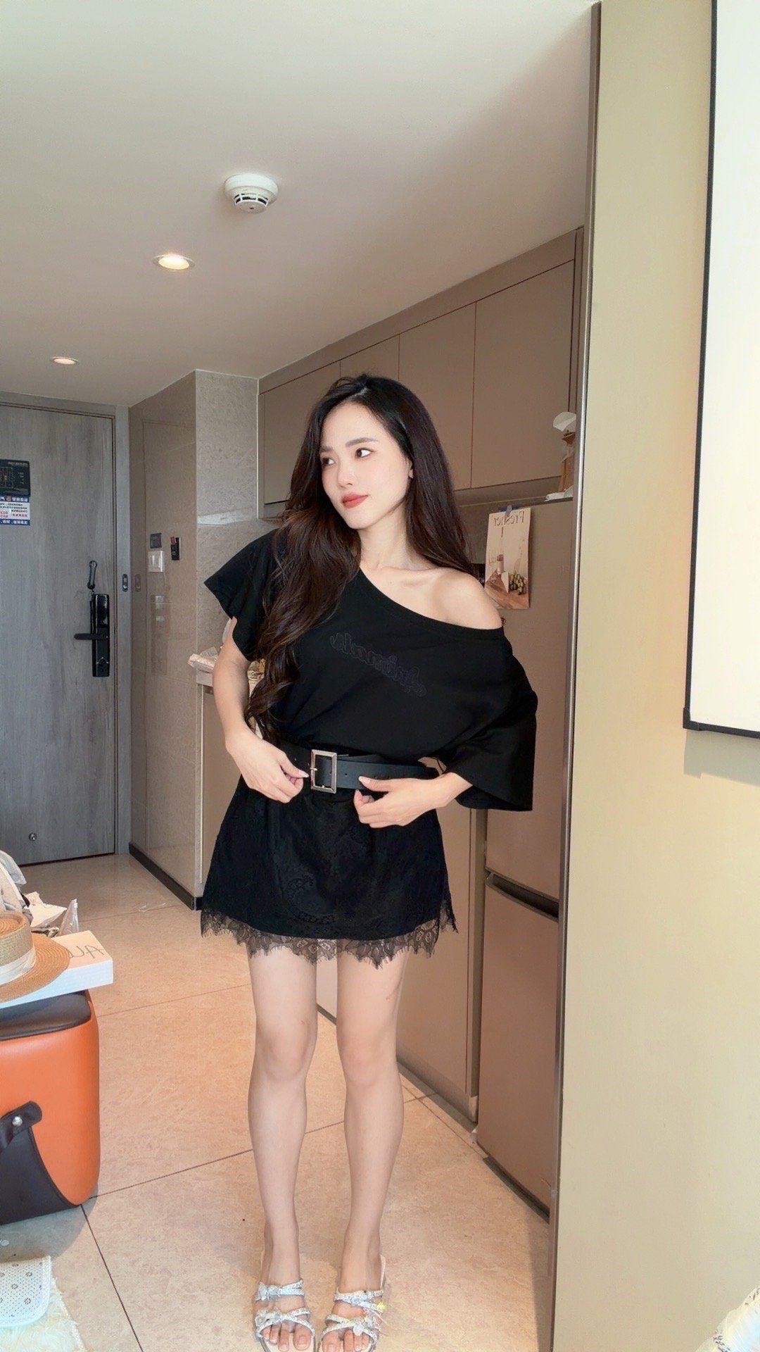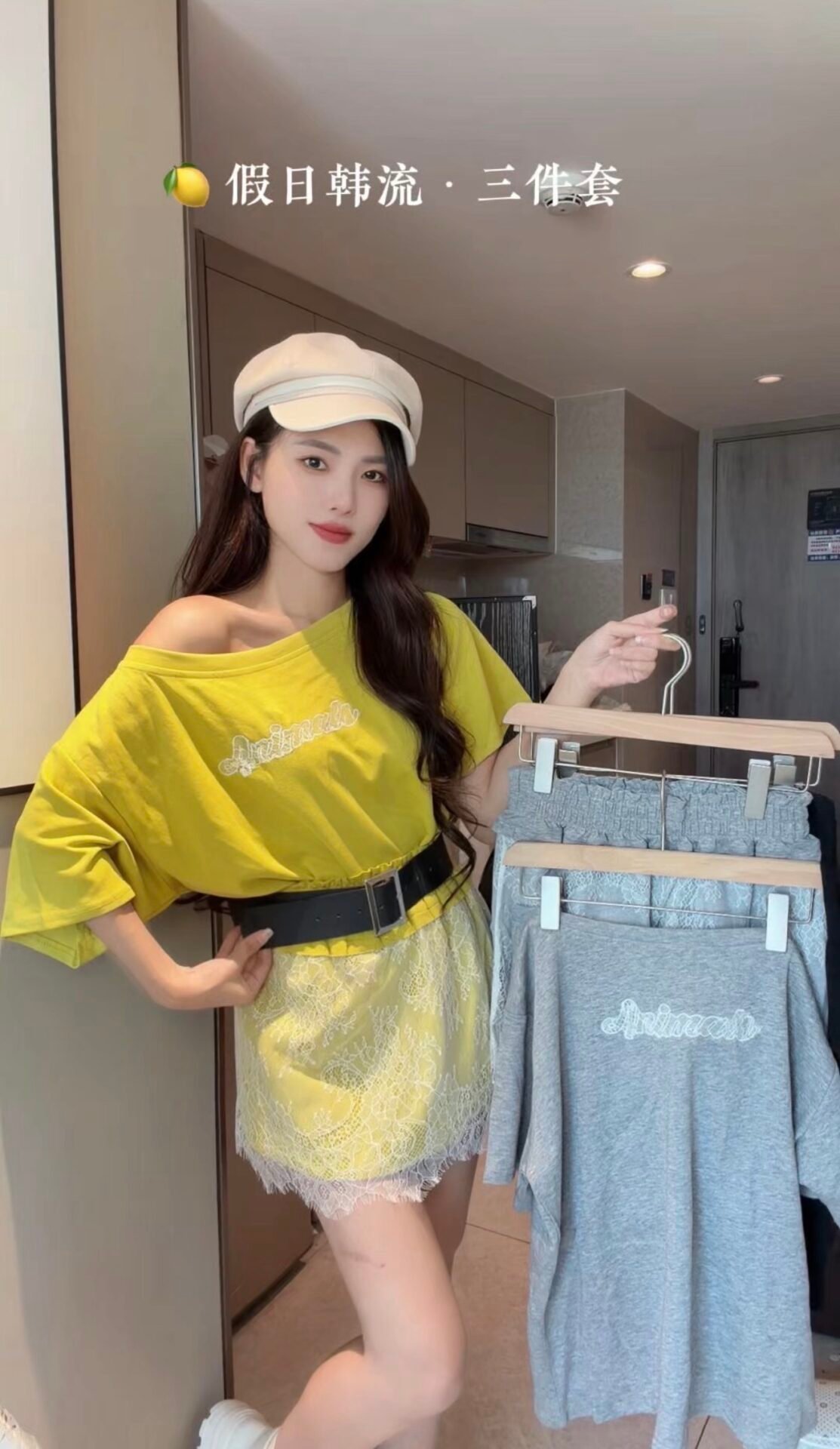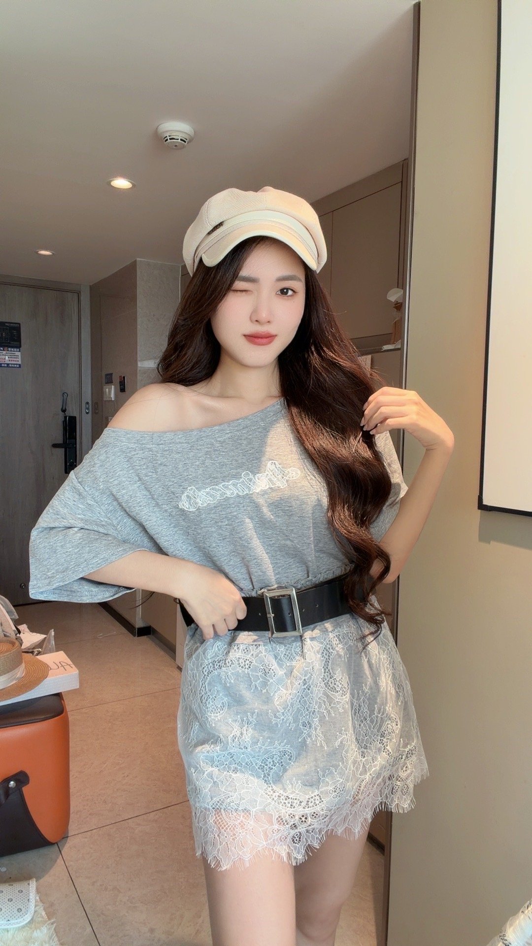 这款又韩又时髦!宽松Tee搭配蕾丝裙 很独特~料子你们肯定喜欢🖤