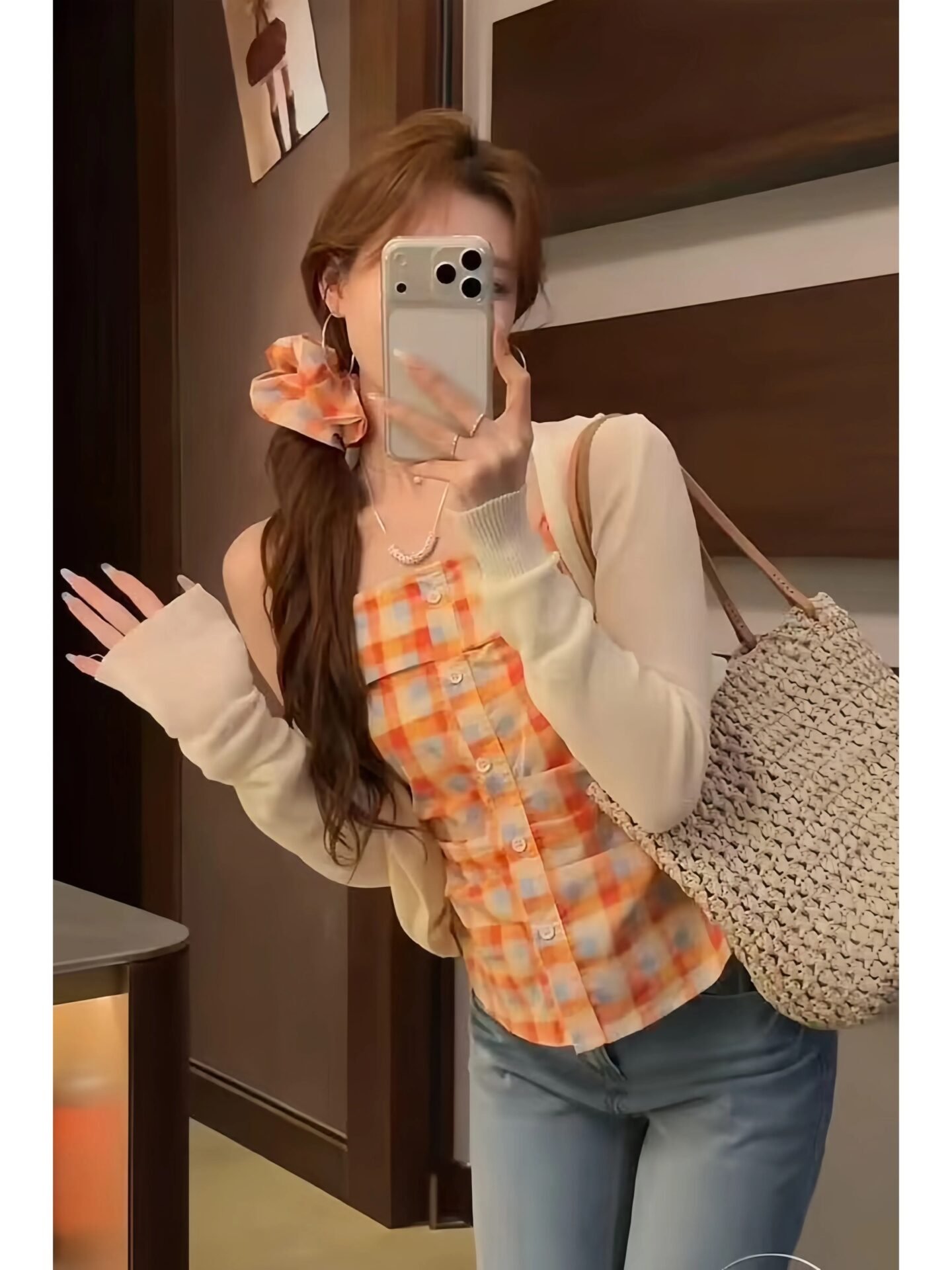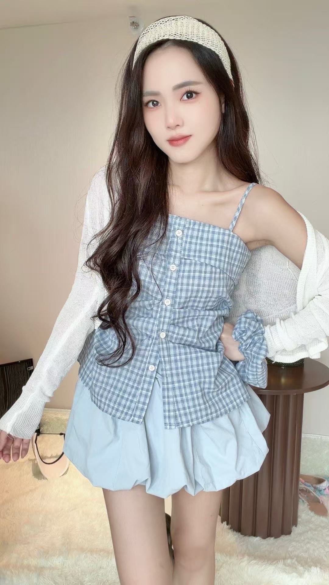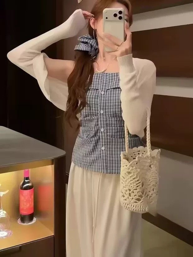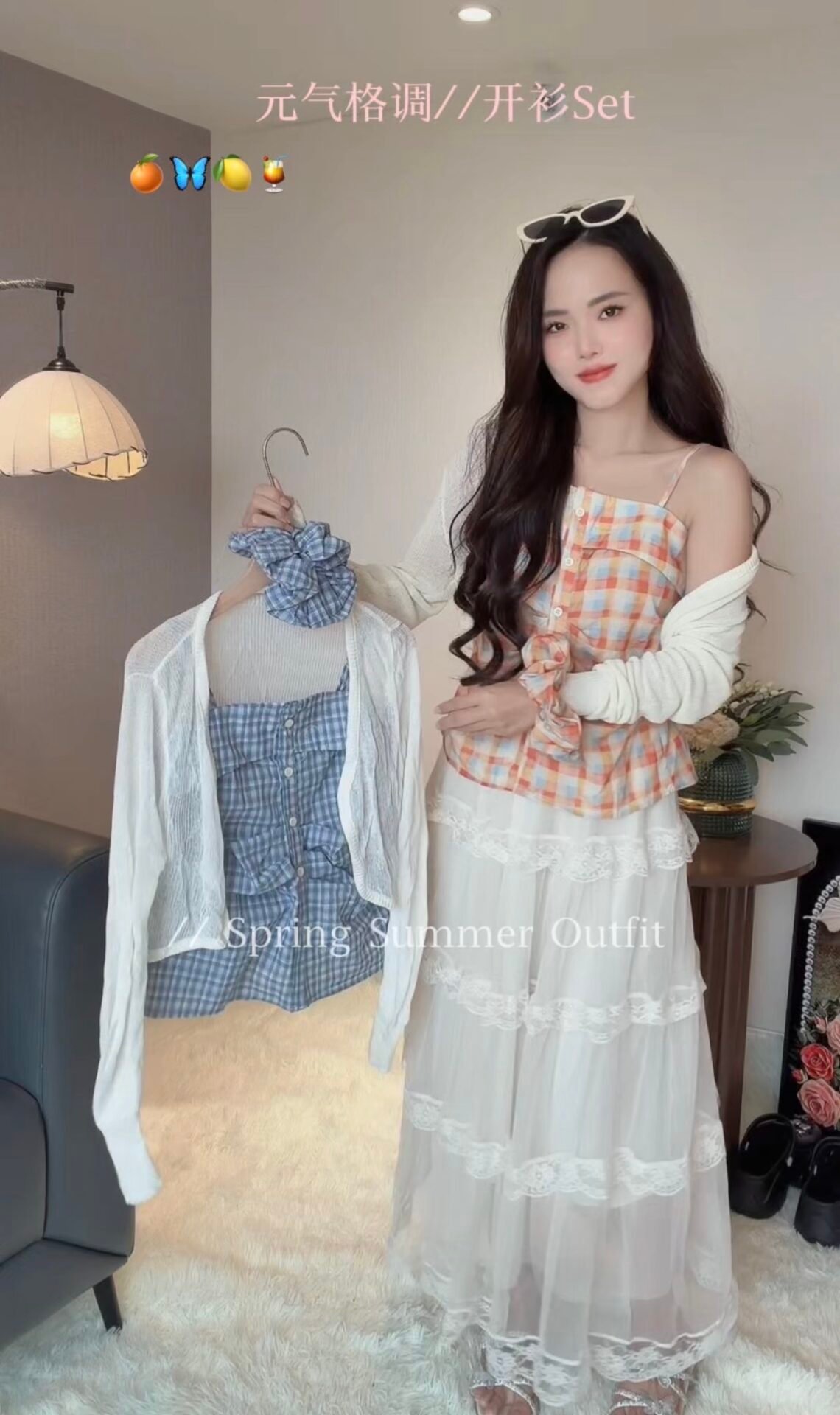 格纹配色好好看😍送发圈!搭配长裙很文艺 搭配长裤又是不同感觉哟🩷
