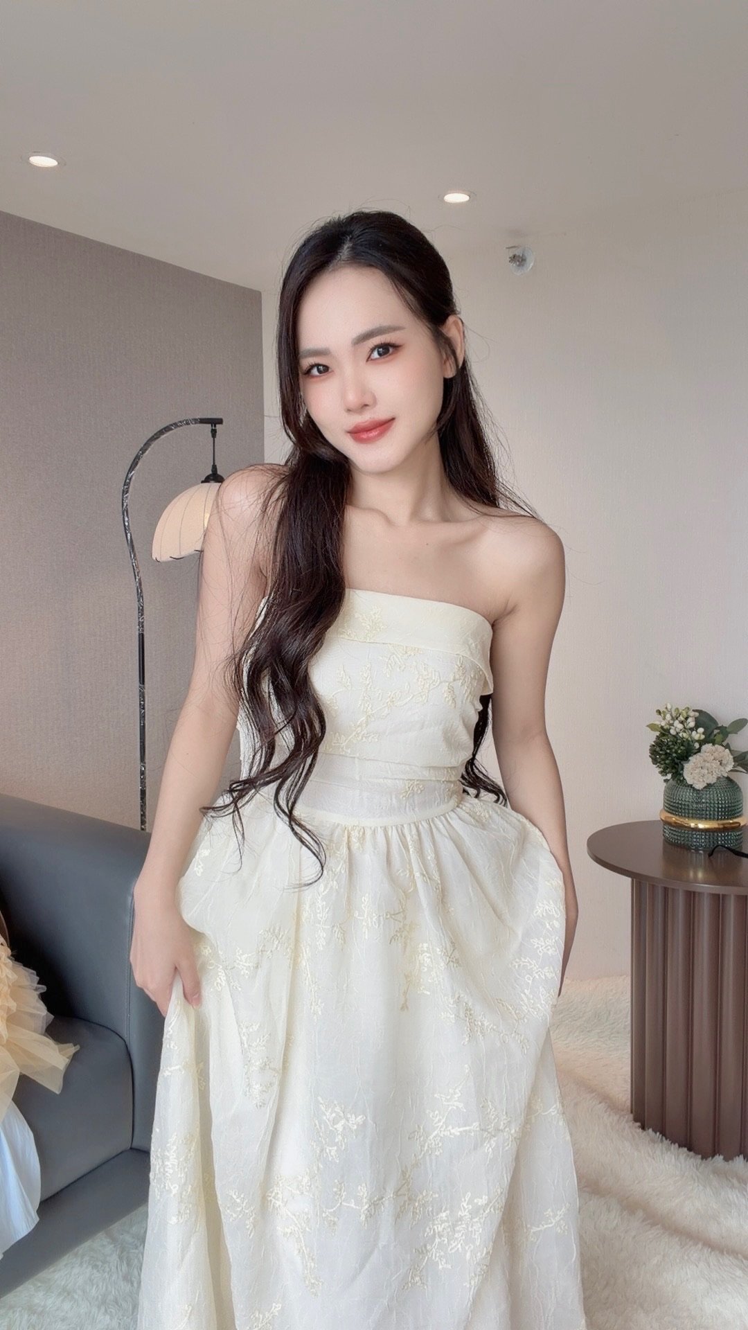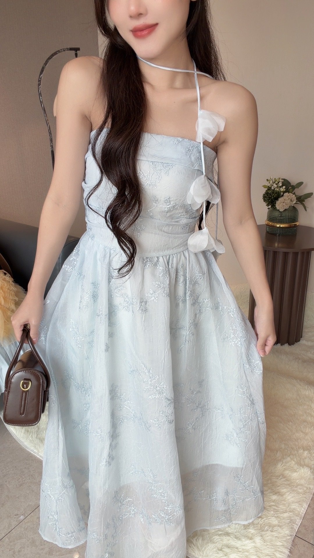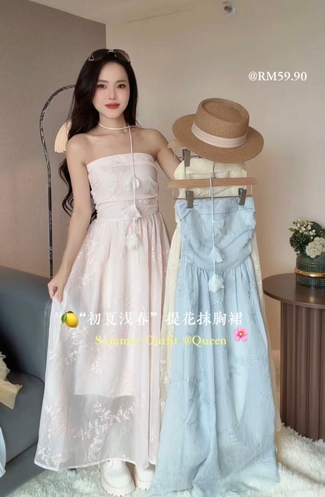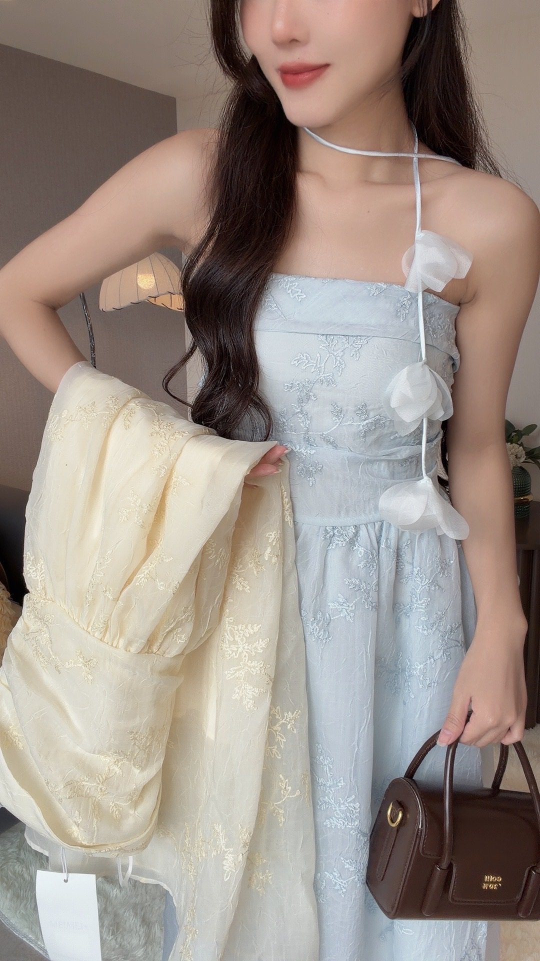 法式宫廷轻奢感的连衣裙👗提花面料的呀 还送花瓣挂件!好piu亮耶🥰