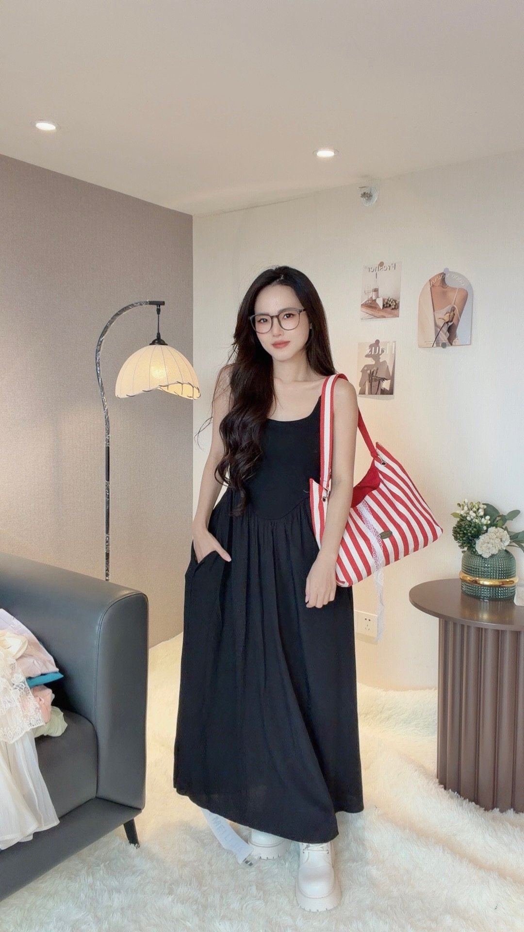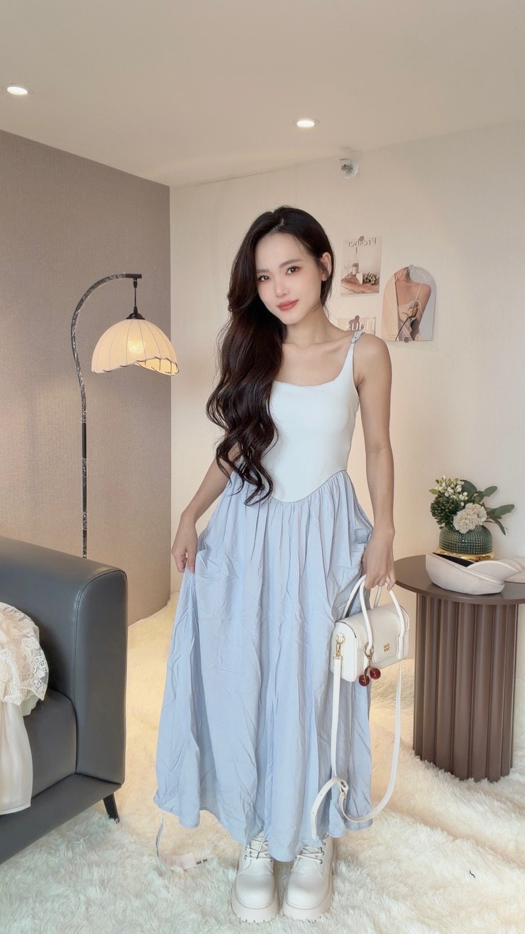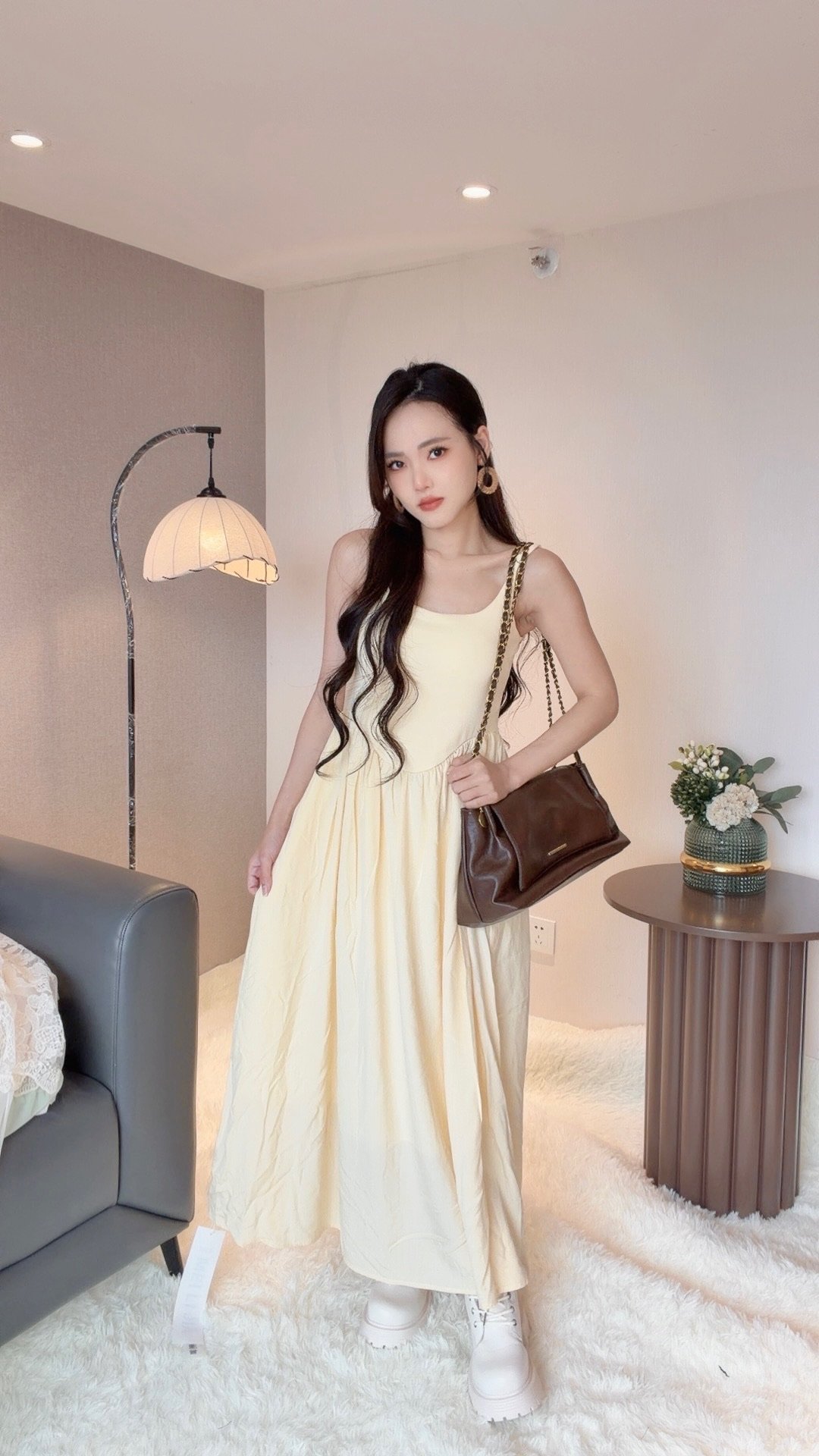 腰间很显瘦 不想露手臂的姐妹 可以搭配薄开衫 会很温柔涅🕊️