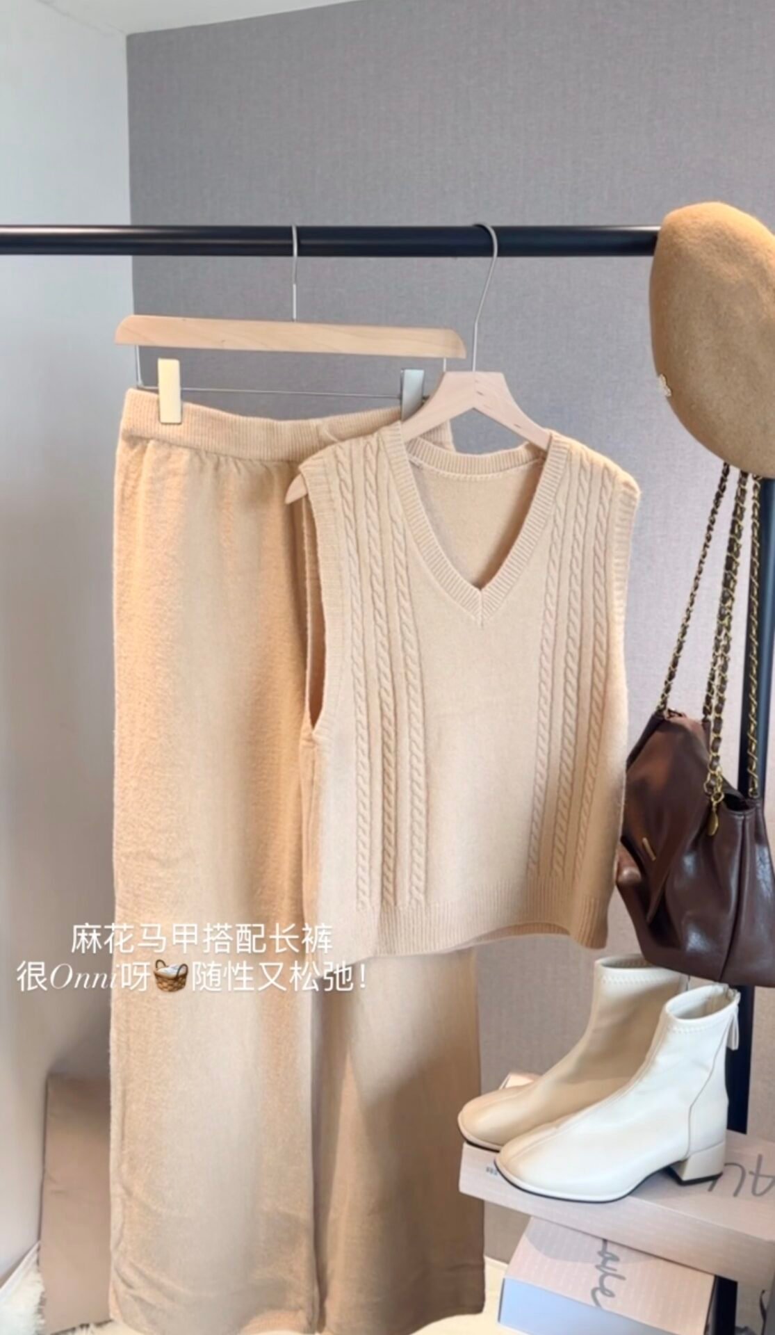 麻花马甲搭配长裤 很Onni呀🧺随性又松弛!