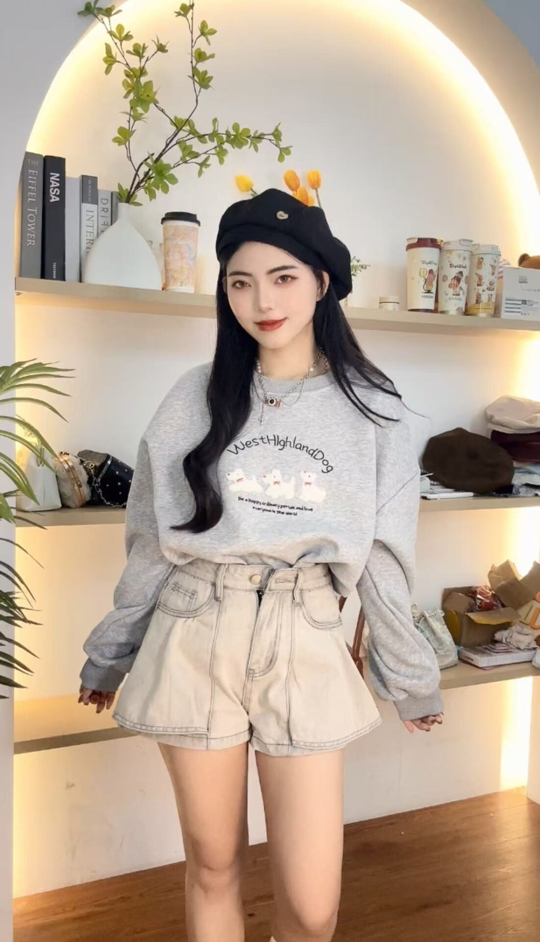 小设计的牛仔短裤~版型很显瘦哦 长度也很刚好🖤