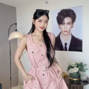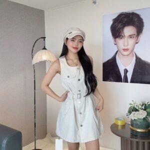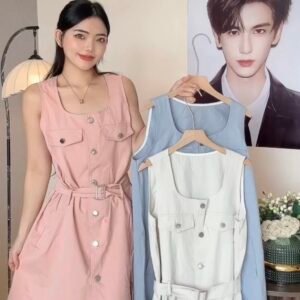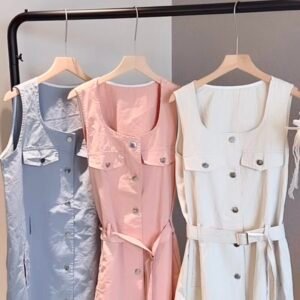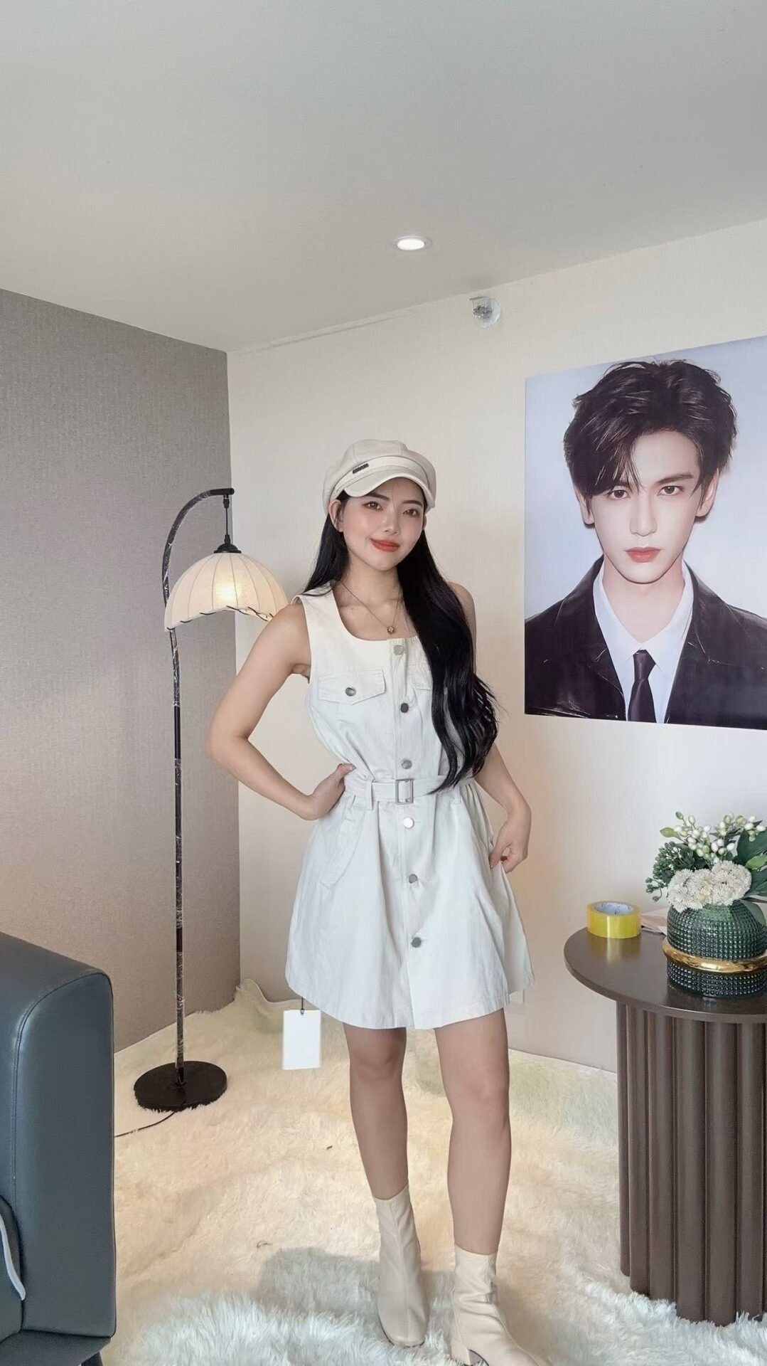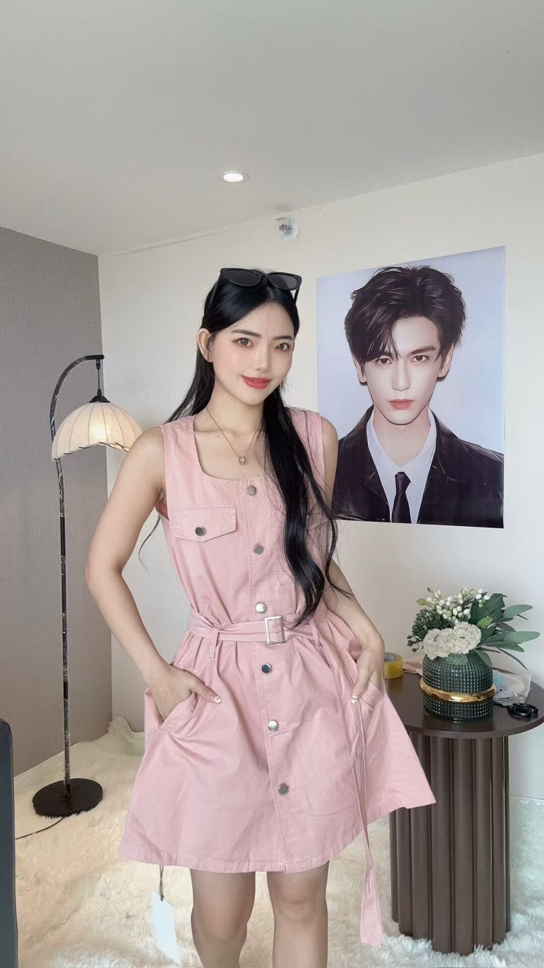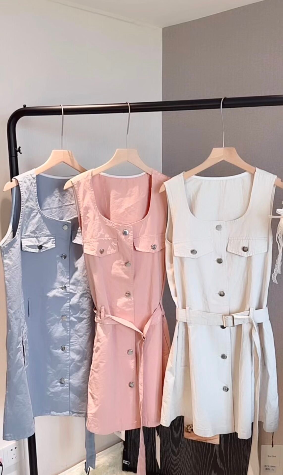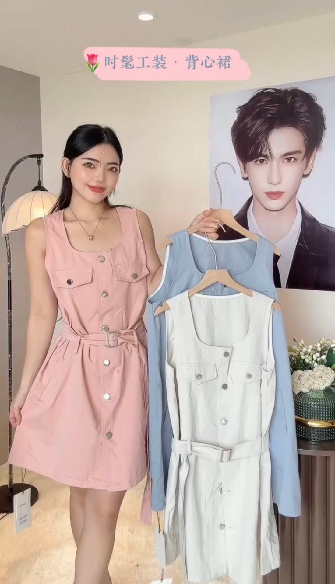 简约时尚的一款工装感裙子~腰间可以自行绑紧哟🩵