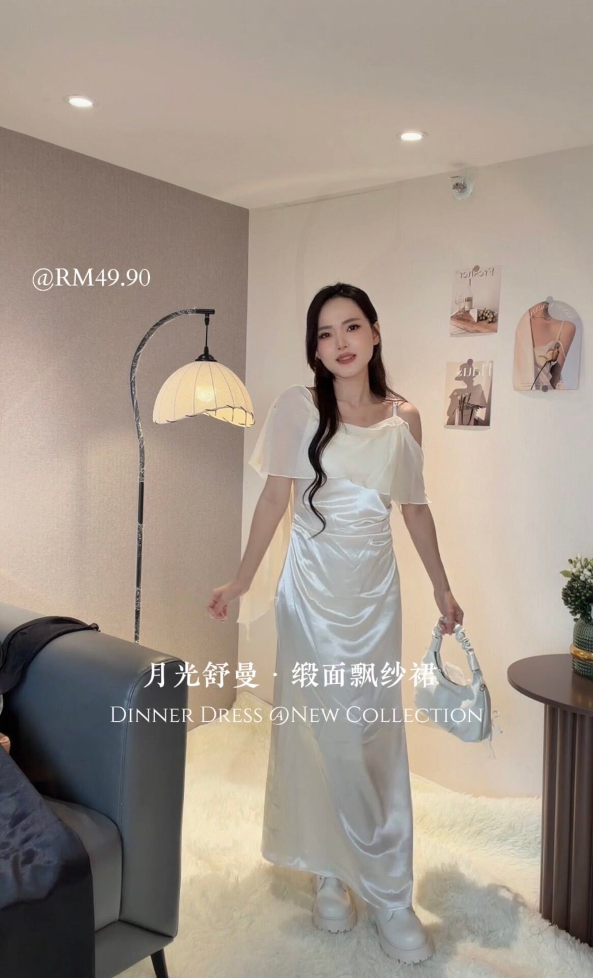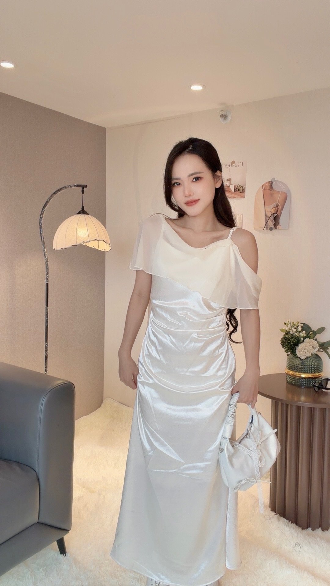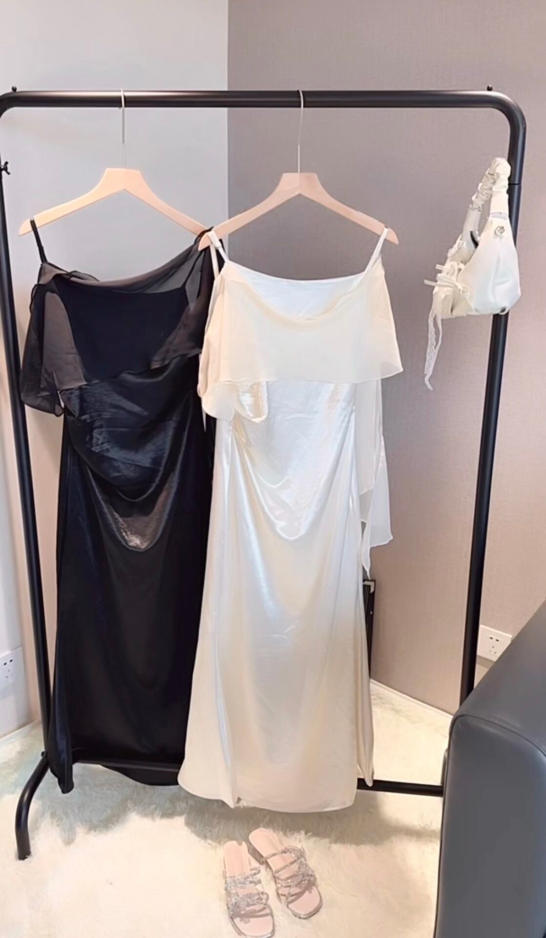 这款上身妥妥的白月光女神叭!网纱飘逸绝对的清冷感 料子是很高级的缎面💫