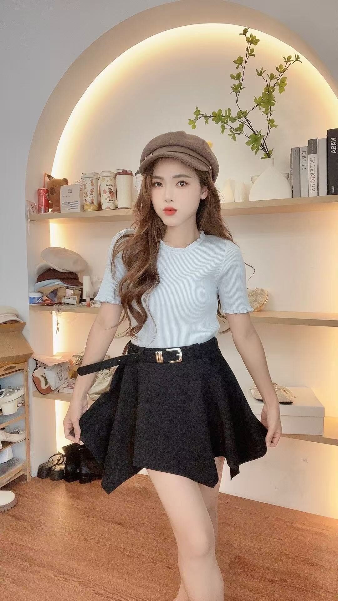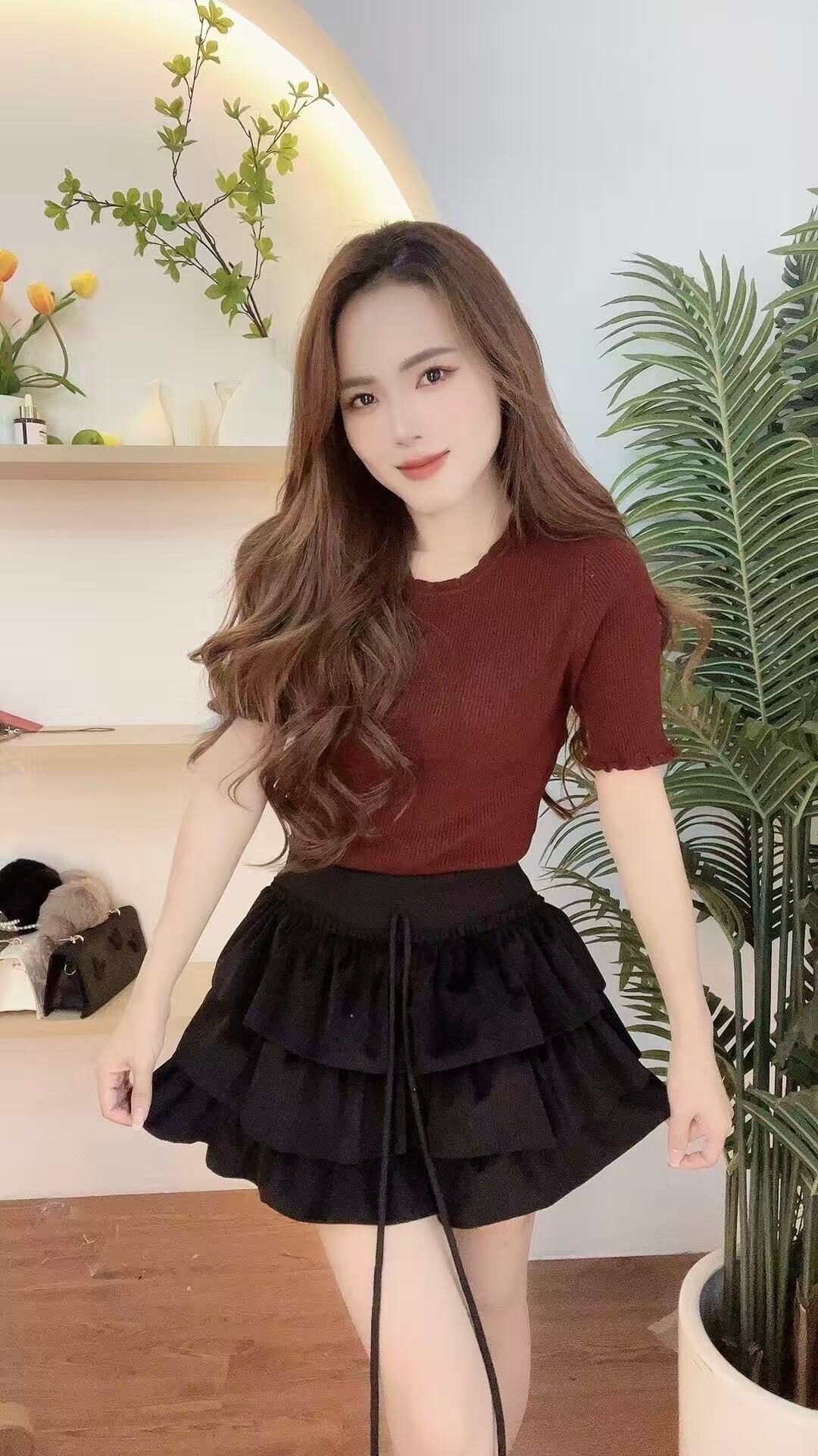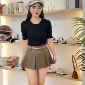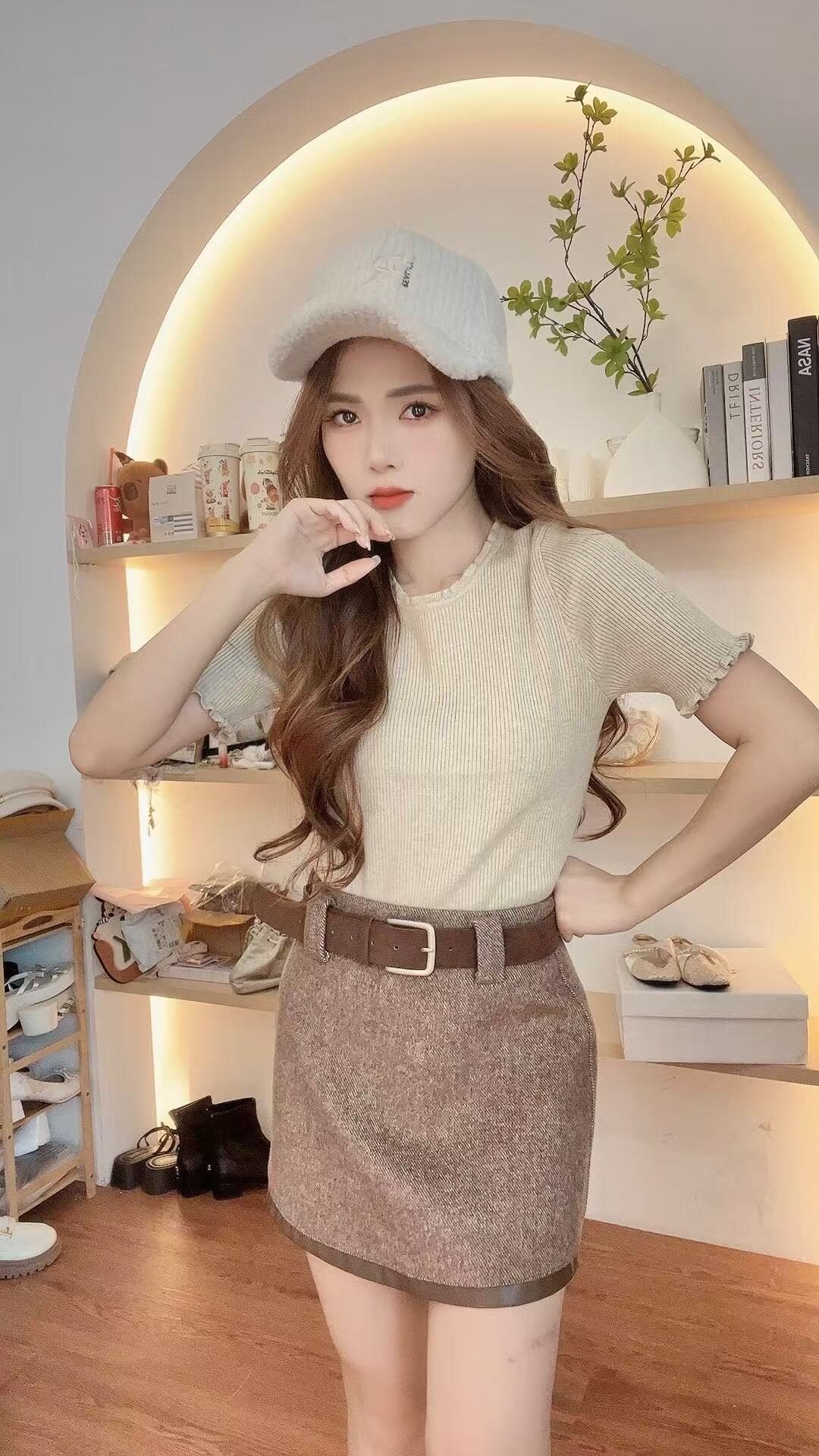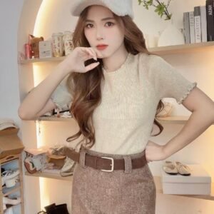 带卷边的针织TEE、配个牛仔裤就很好看了呀🖤