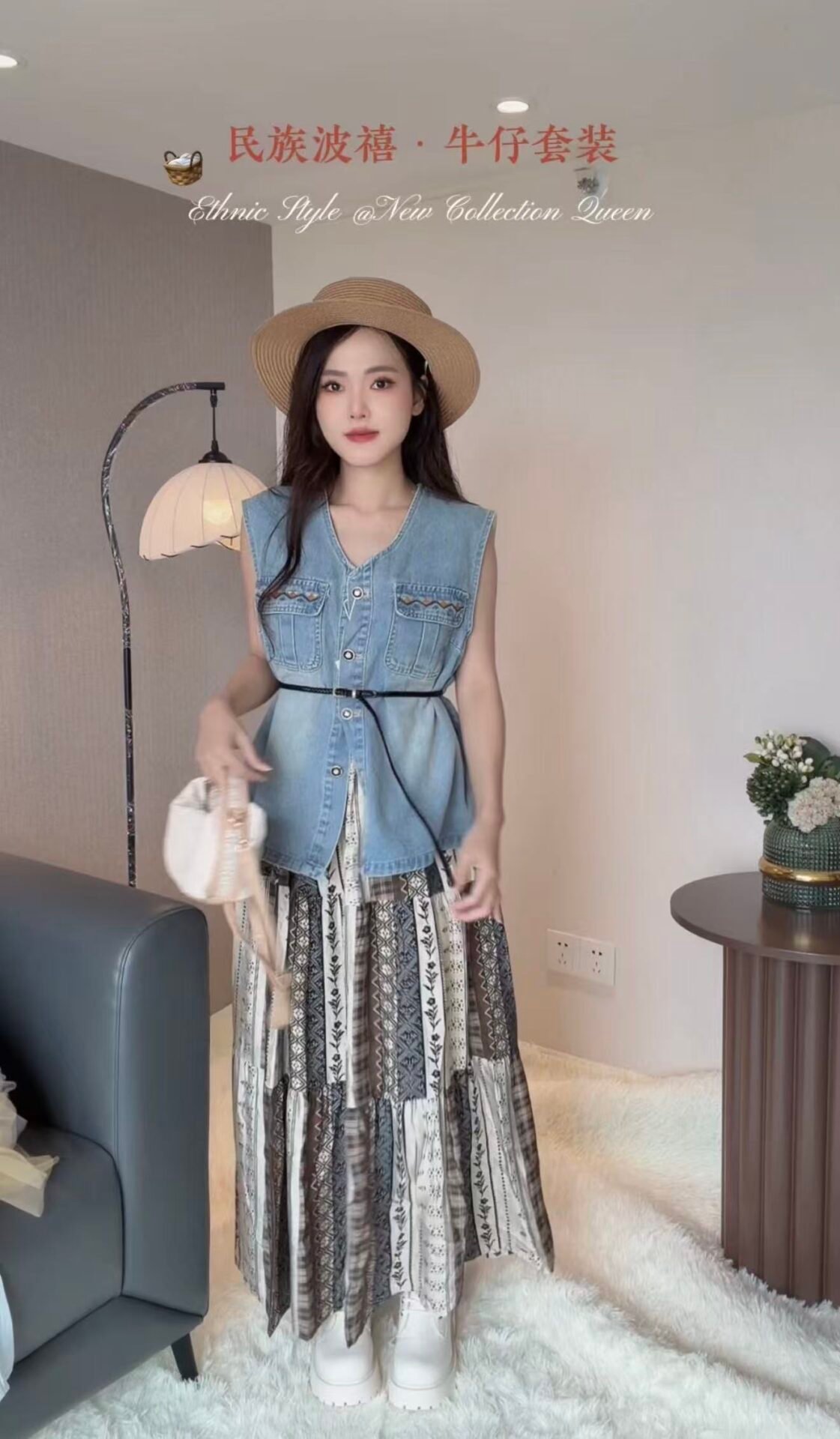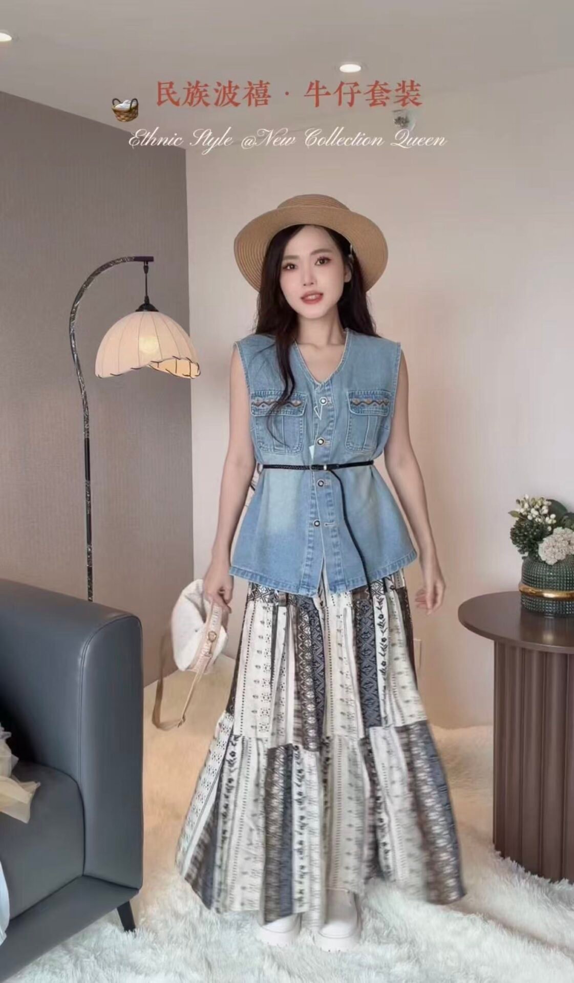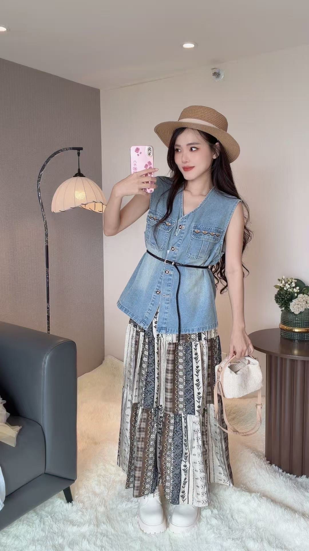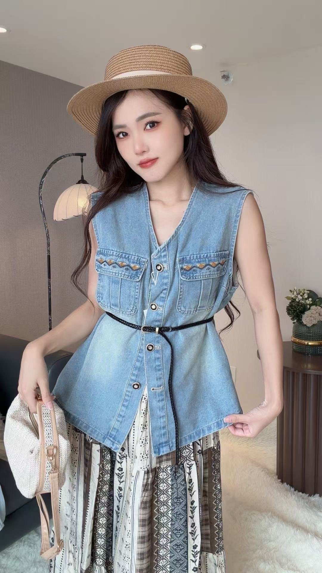 波西米亚风格的套装 是搭配牛仔马甲的哦😍很少见的款~