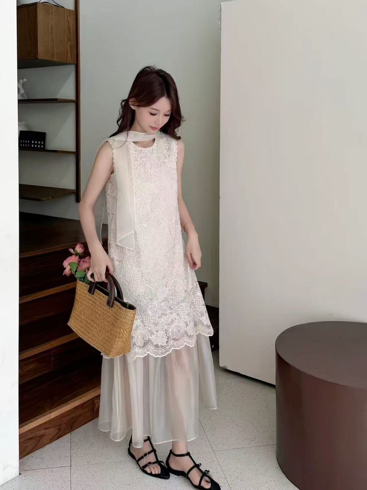 风情万种的蕾丝长裙 还搭配了丝巾 好浪漫的感觉🕊️
