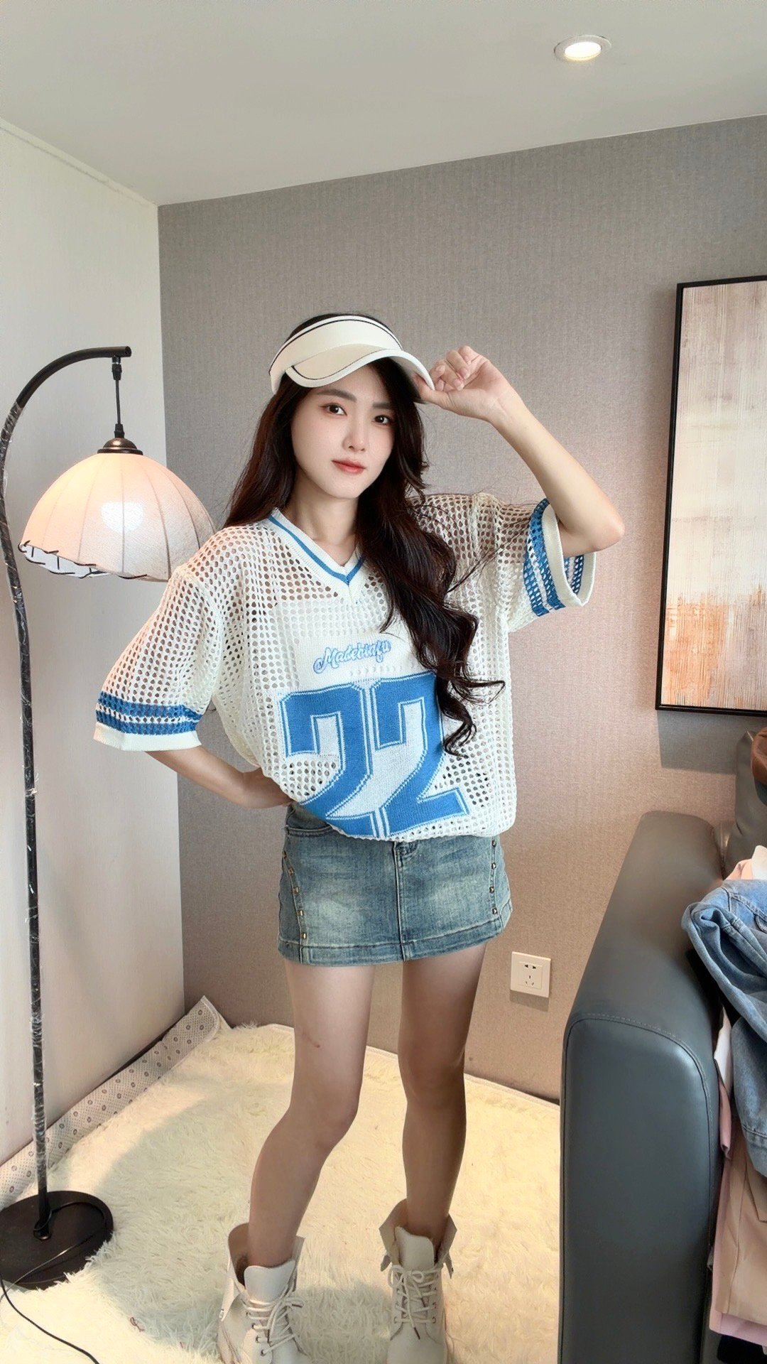 有哪位姐妹也喜欢球衣穿搭吗~镂空感不闷热呀 还附送小内搭😍