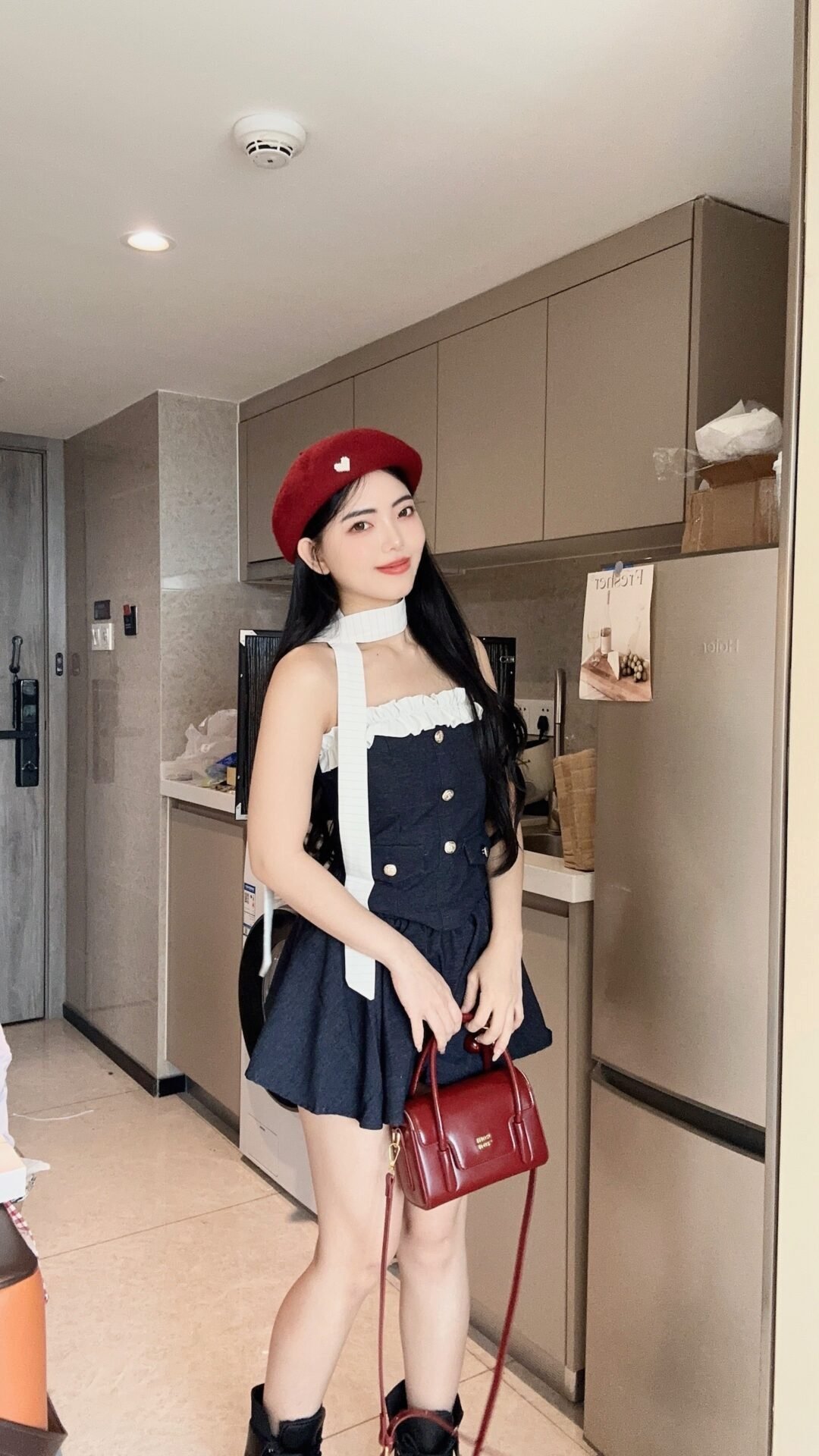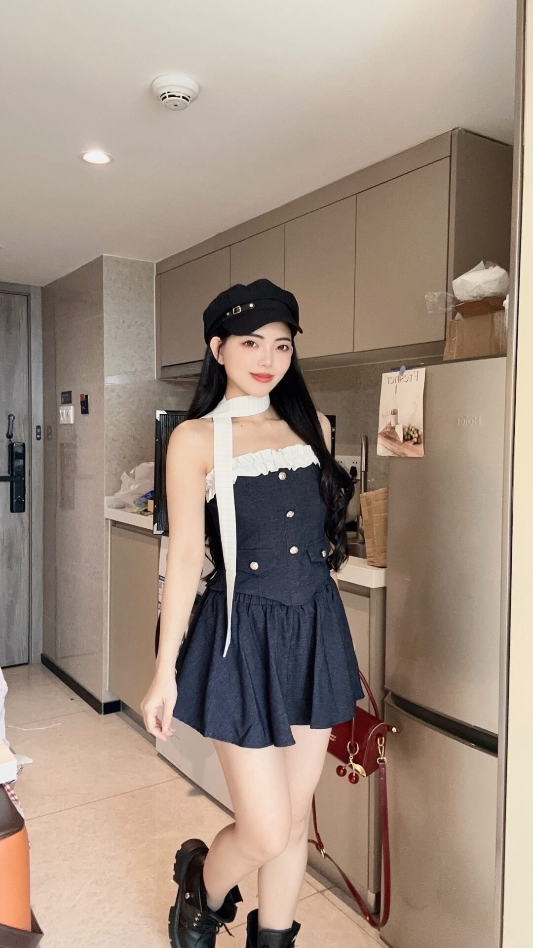含金量满满的套装!上衣卷边小心思 搭配金扣很高级~