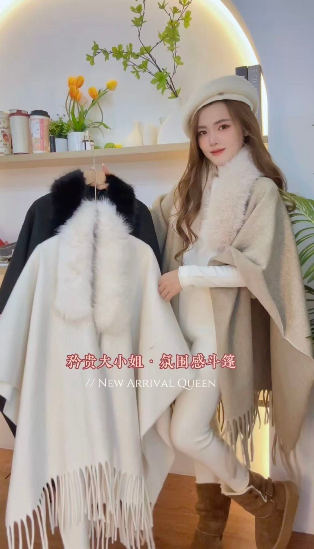 很大气的仿羊呢披肩、大版型哦🩷毛毛可拆