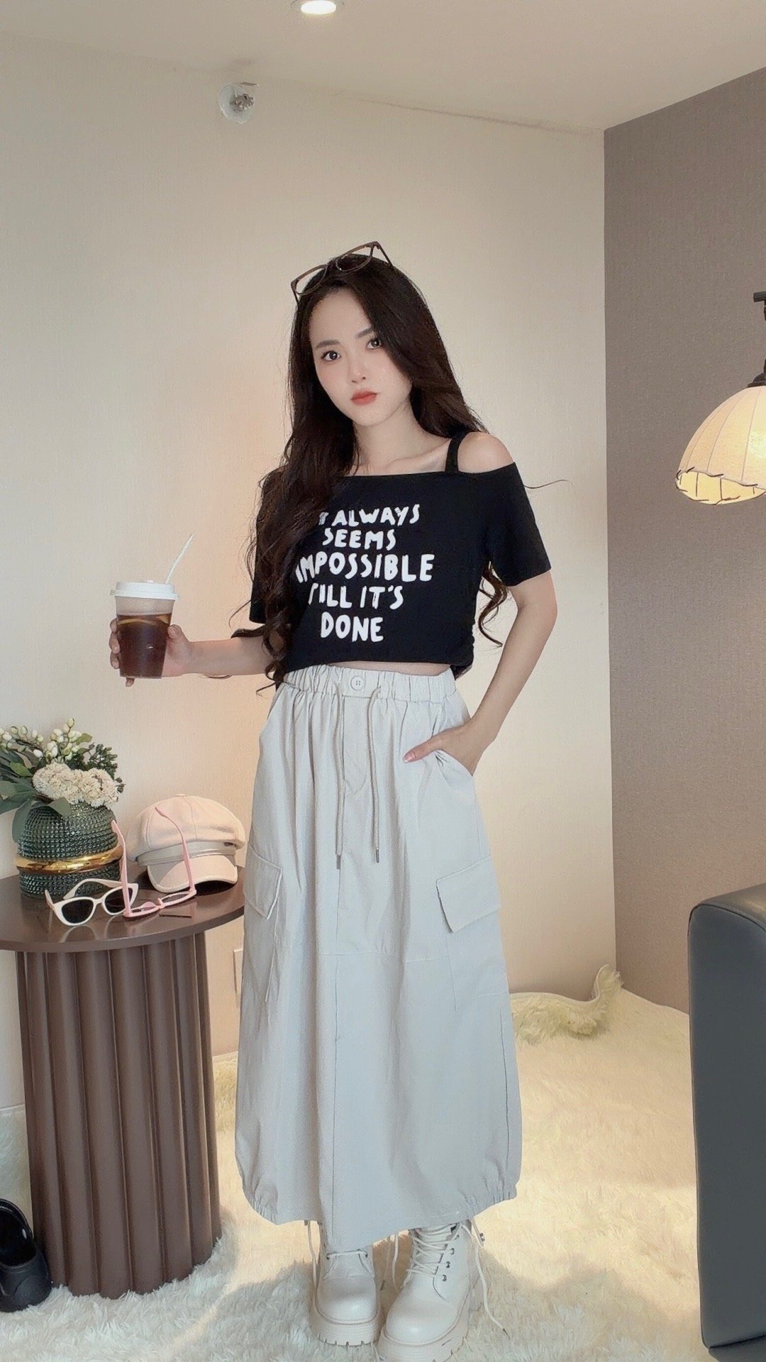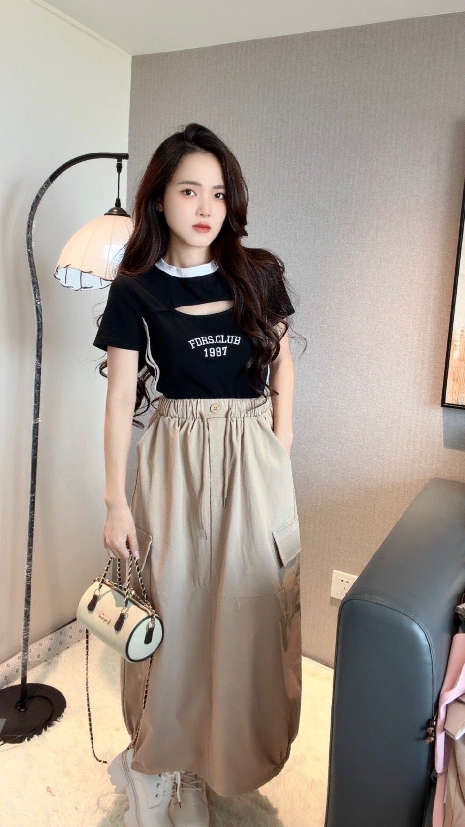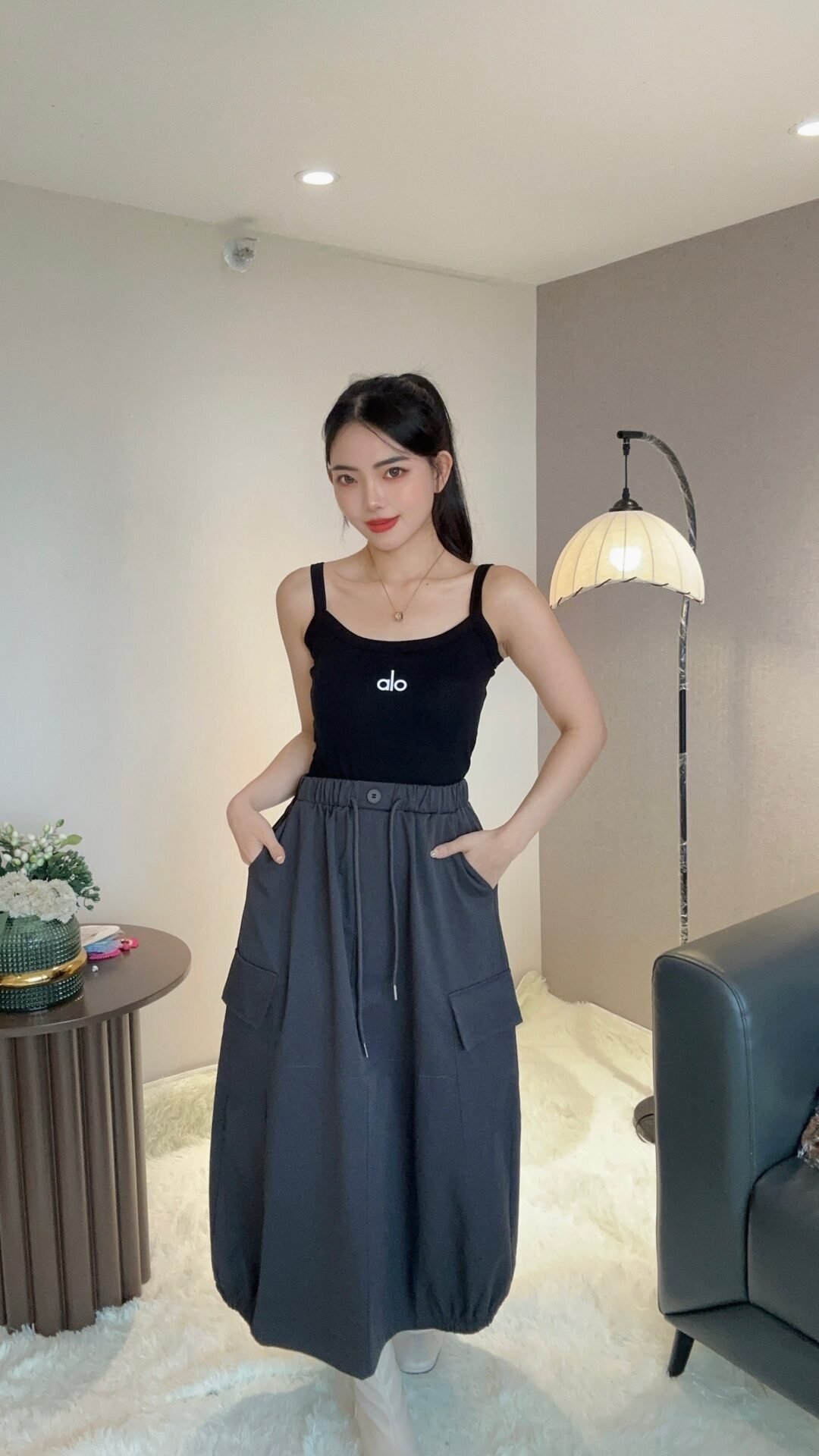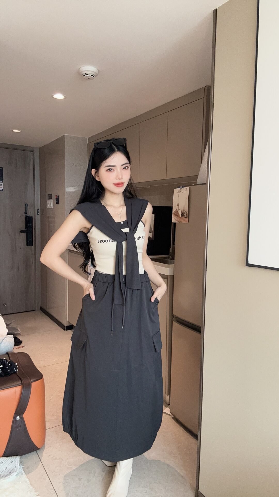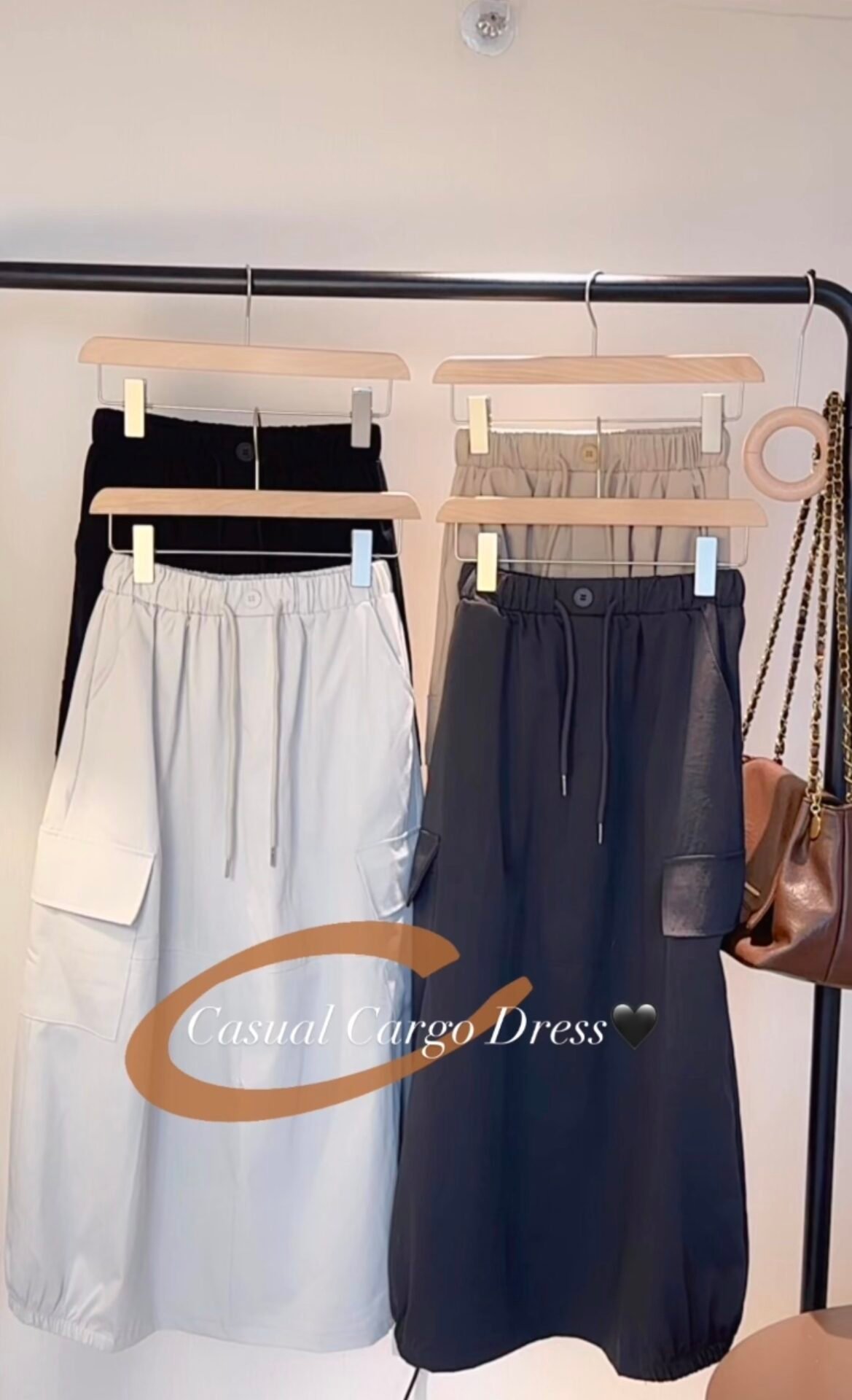 裙摆是弹力设计的呀 还有两个大口袋😍质感很好呀
