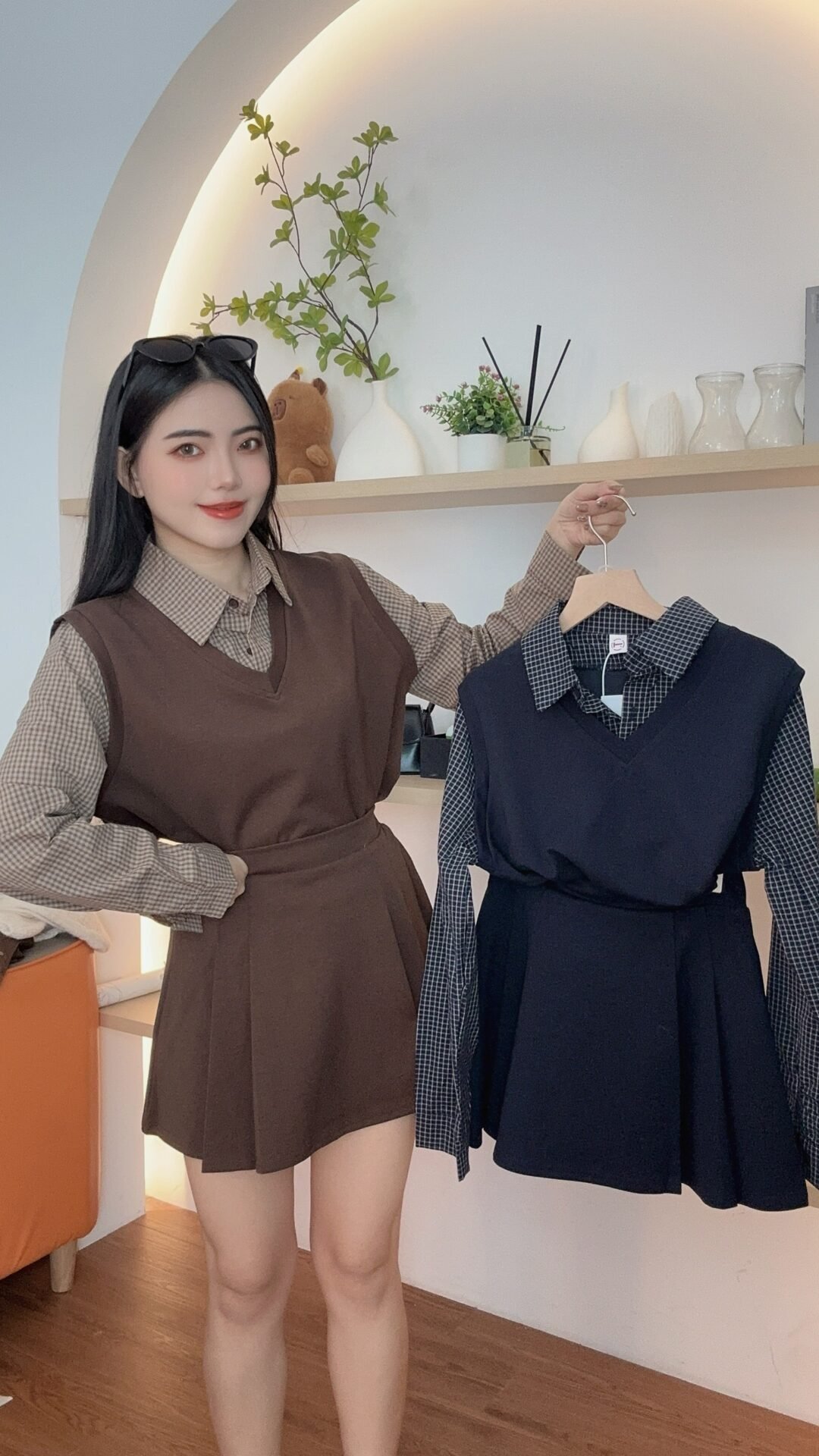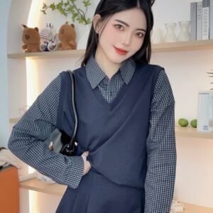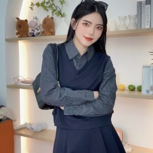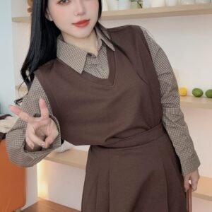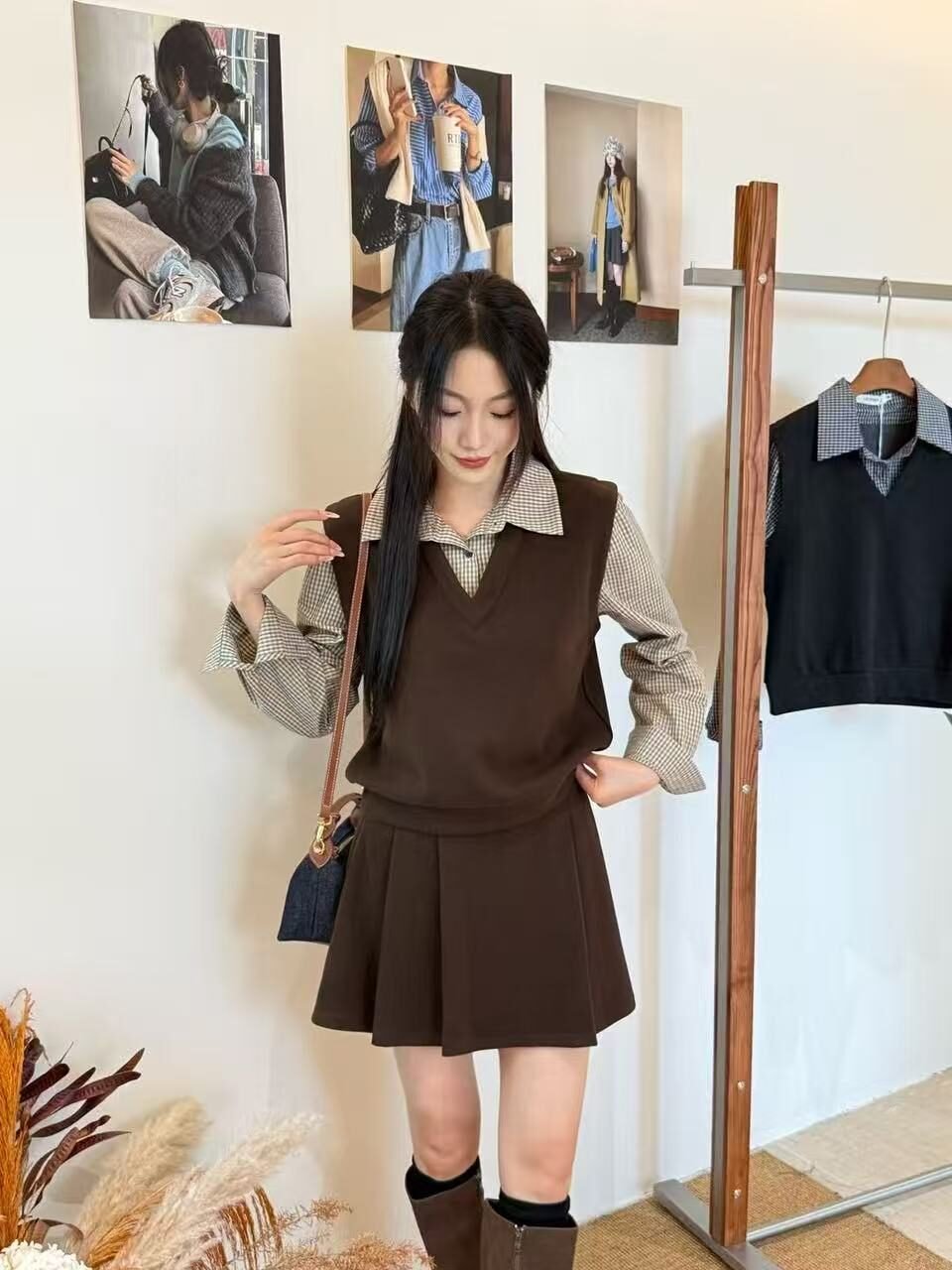 复古风套装🥐是格纹拼接的呀、还配了裙子 好减龄🖤
