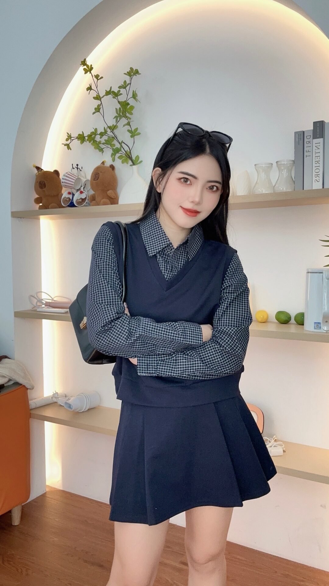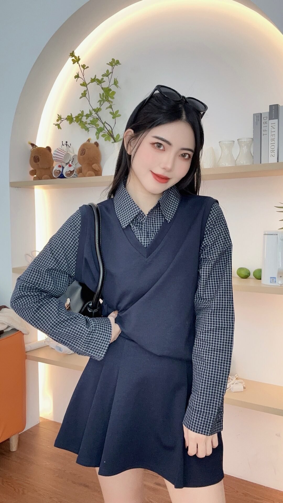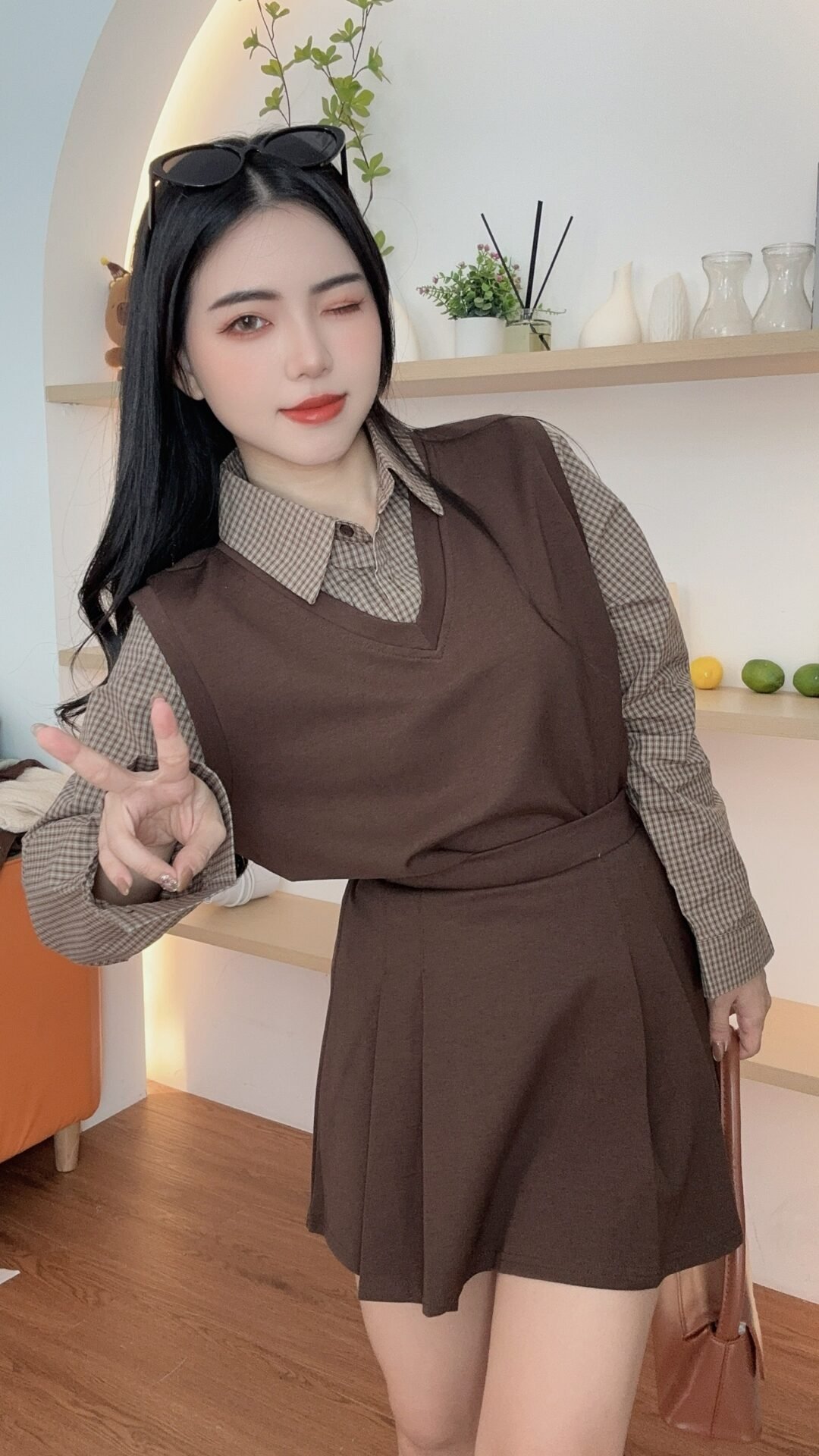 复古风套装🥐是格纹拼接的呀、还配了裙子 好减龄🖤