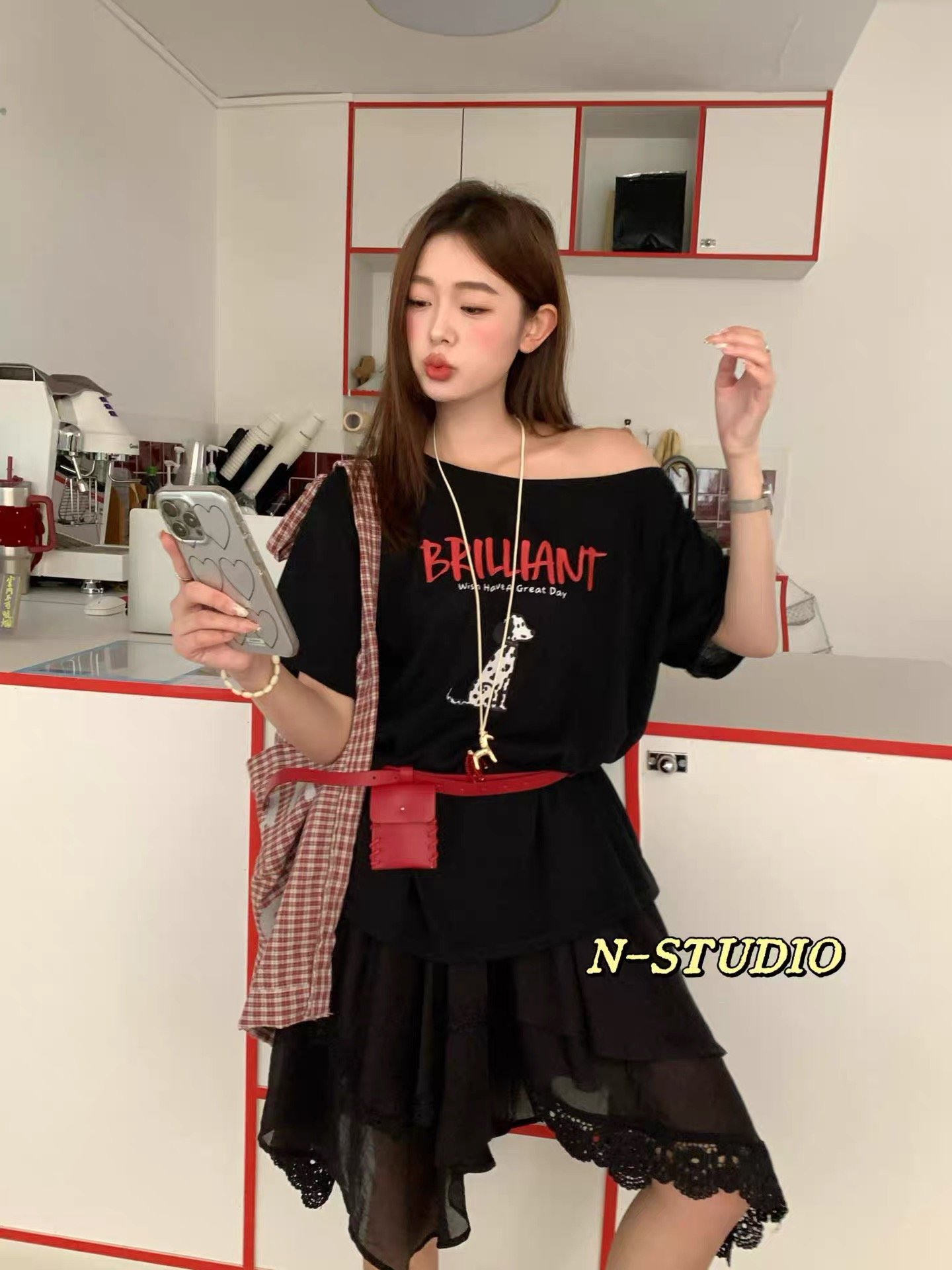 主打慵懒感 原本是很简约的T 搭了腰带整个感觉不一样耶!😍