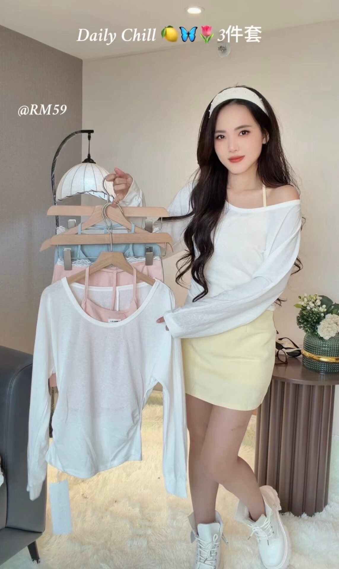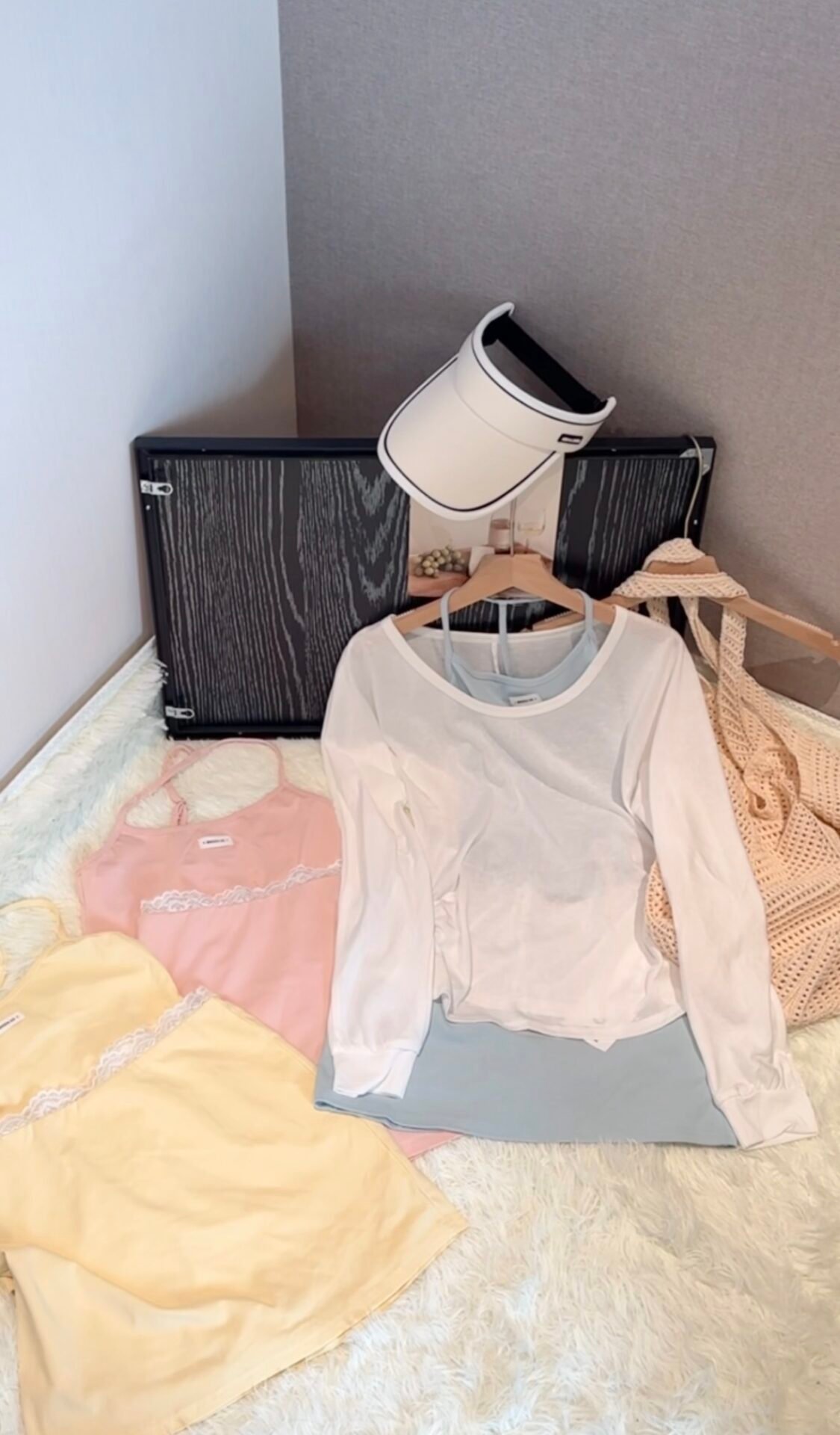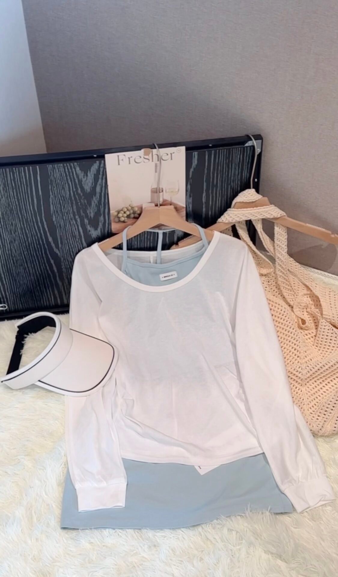 松弛girl必入的一款套装🩷长袖衫+背心+裤裙~