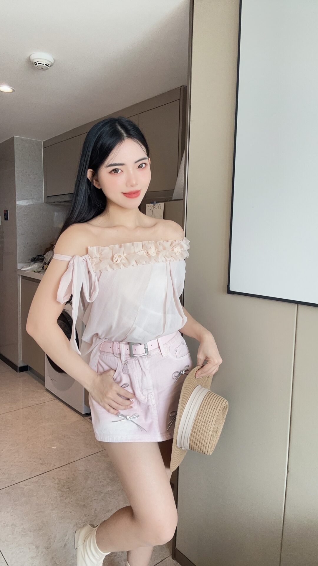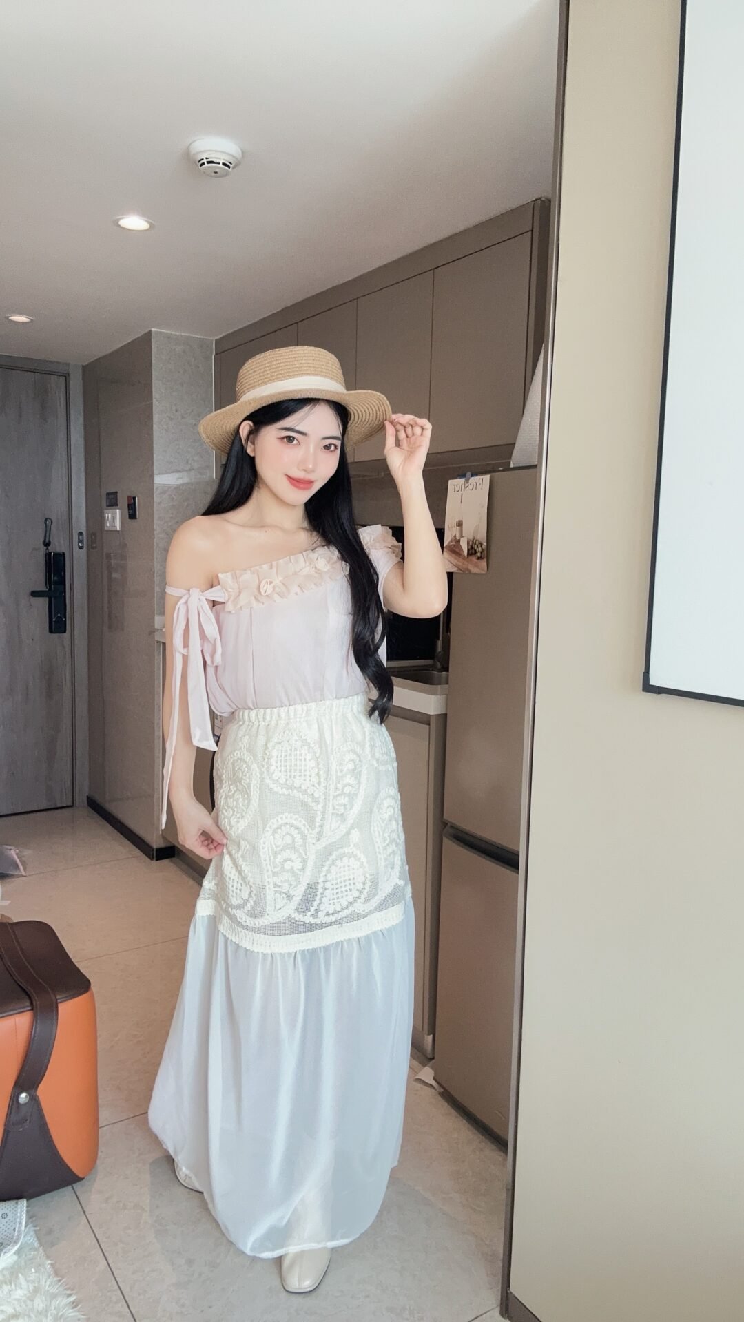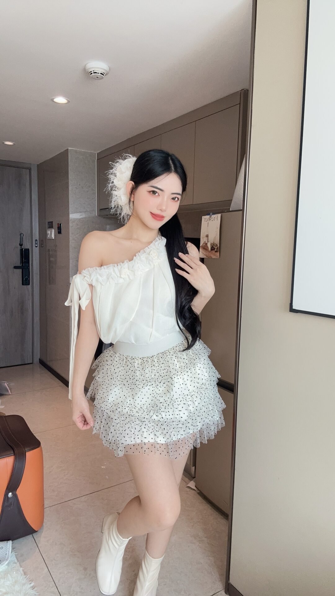 斜肩设计+立体花点缀🌸 卷边细节感、韩系氛围拉满~