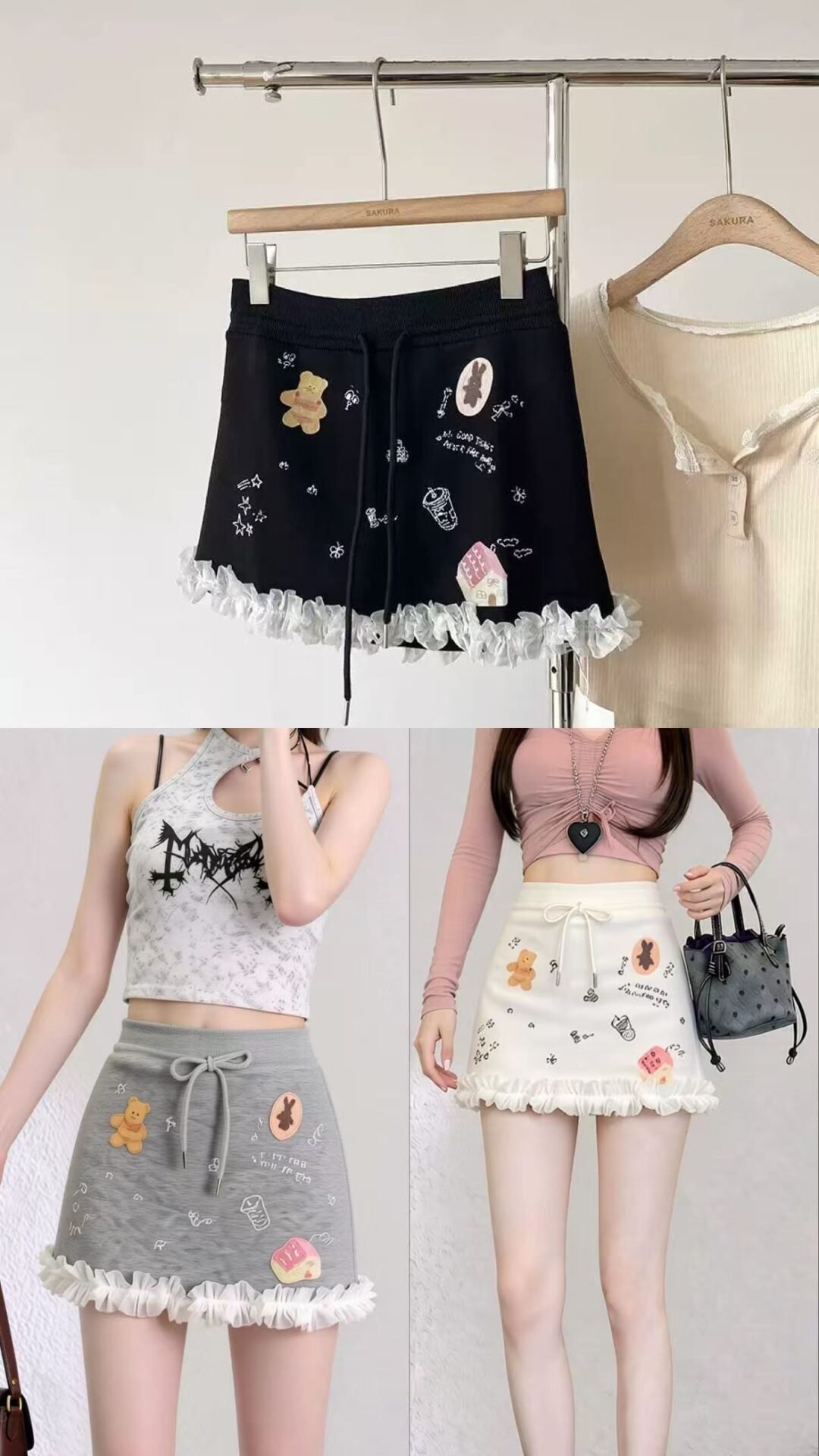 谁懂啊!可甜可盐的涂鸦款短裙好百搭好吸睛😍甜酷少女感拉满耶~ *有裤子内衬