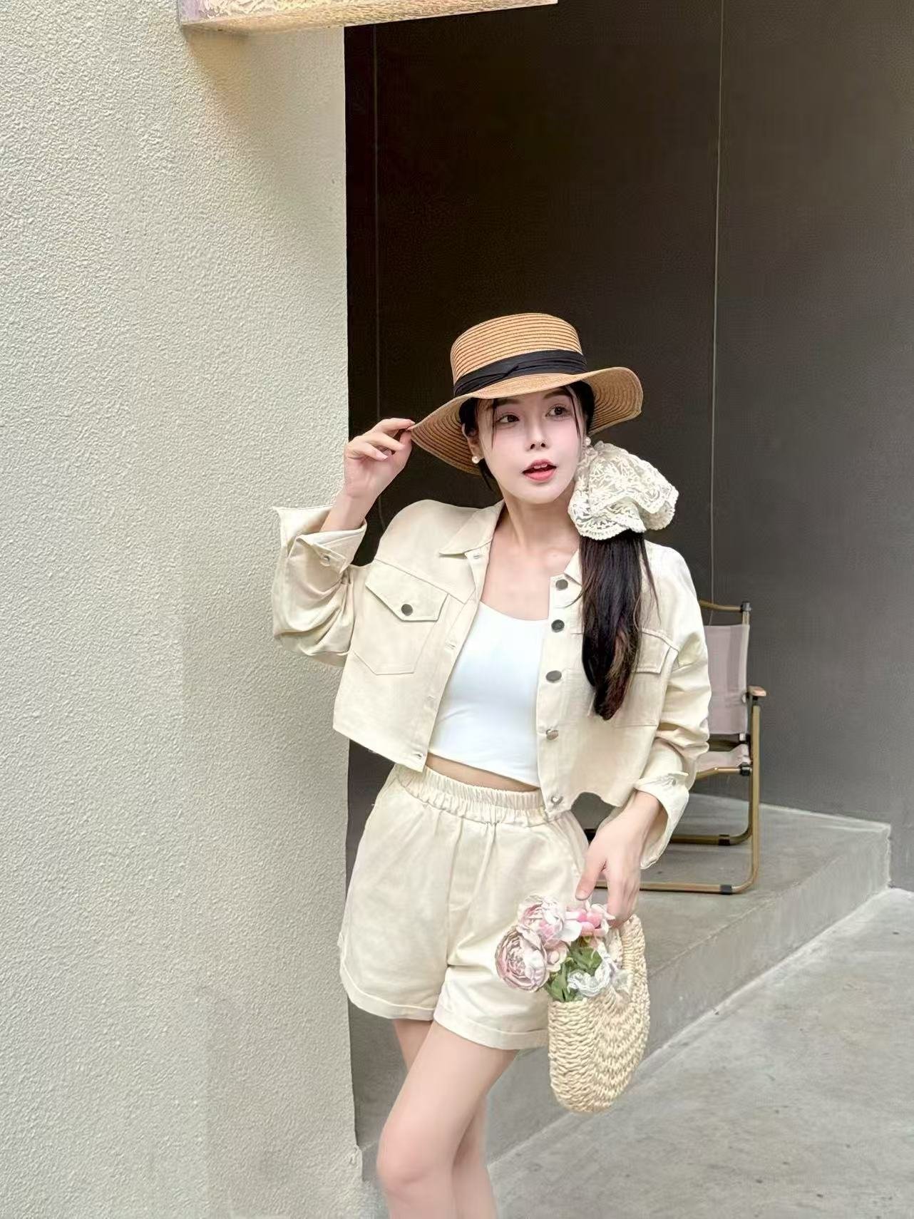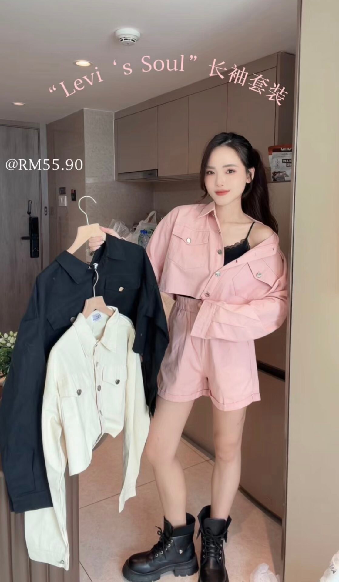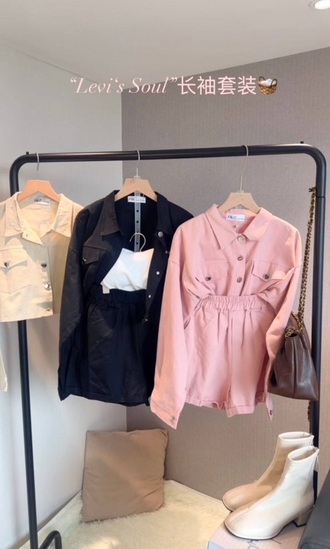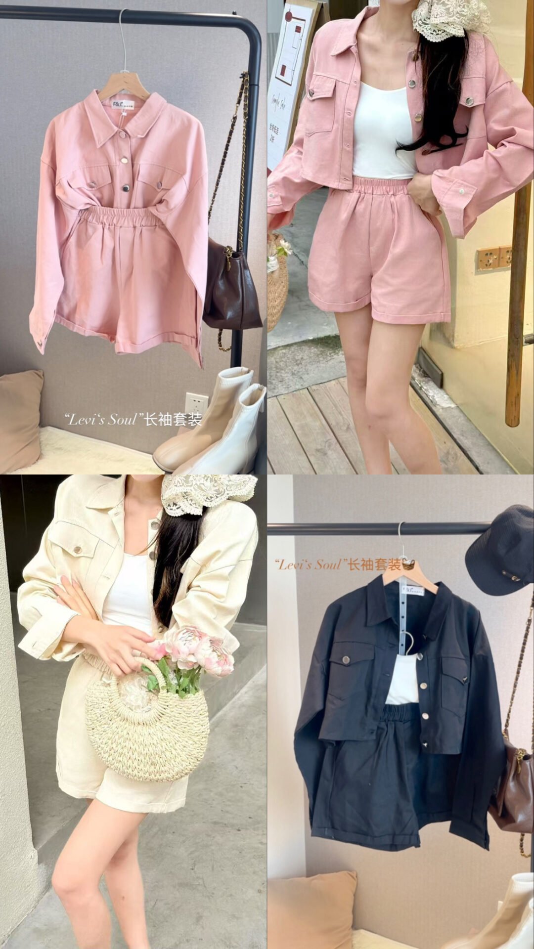 带点工装风的长袖款套装~软牛仔料子哦🩷价格不要太甜😆