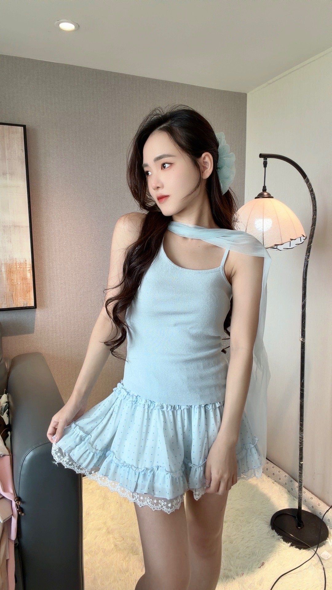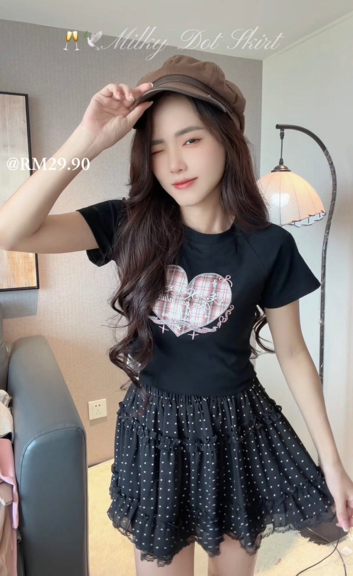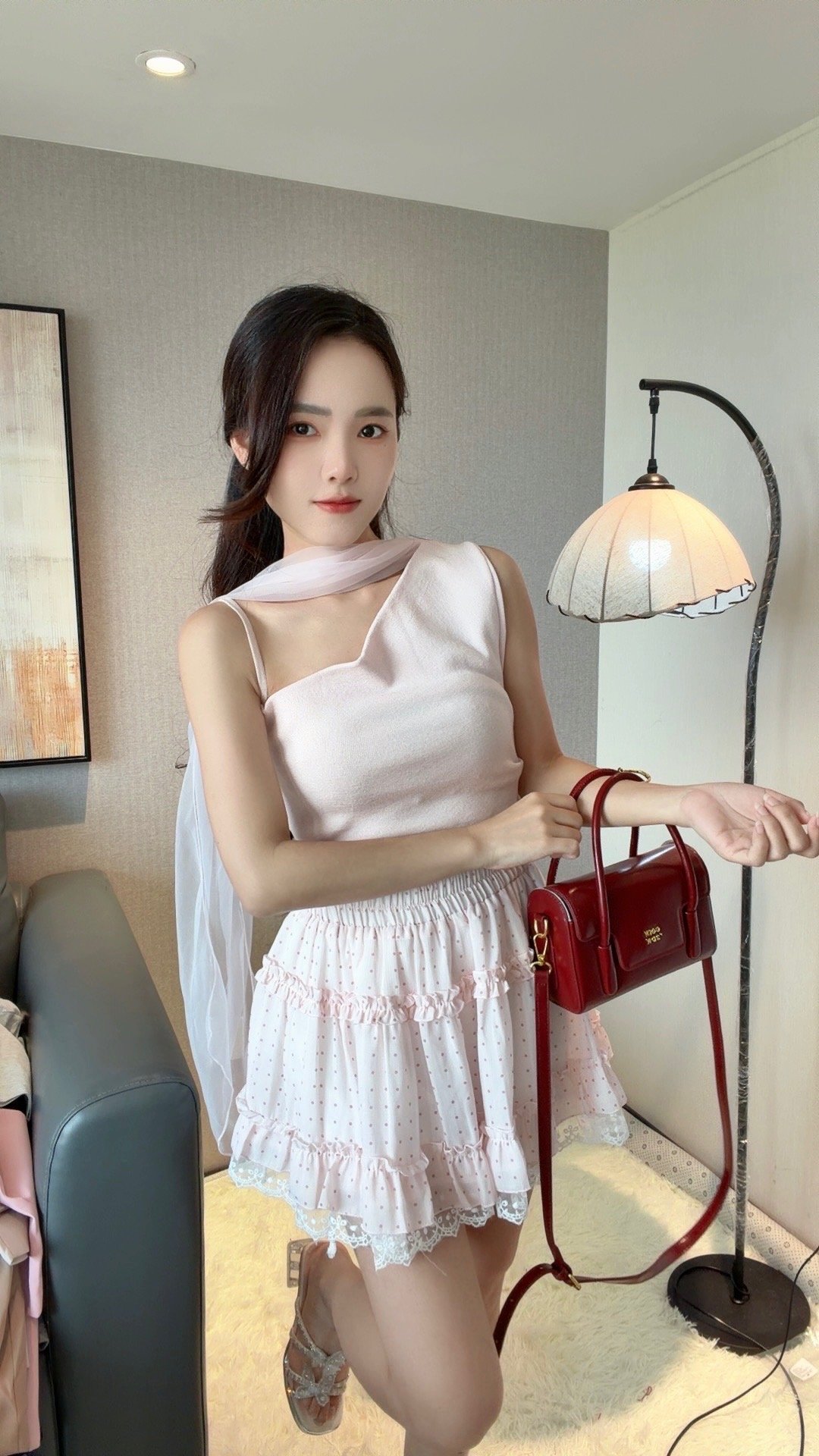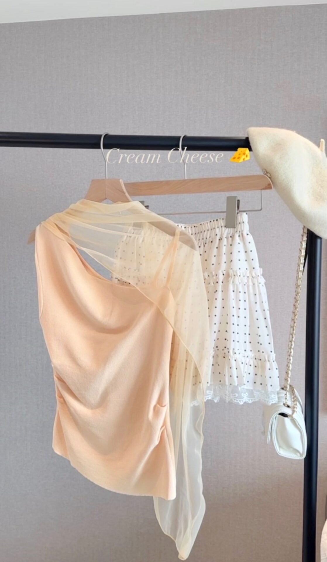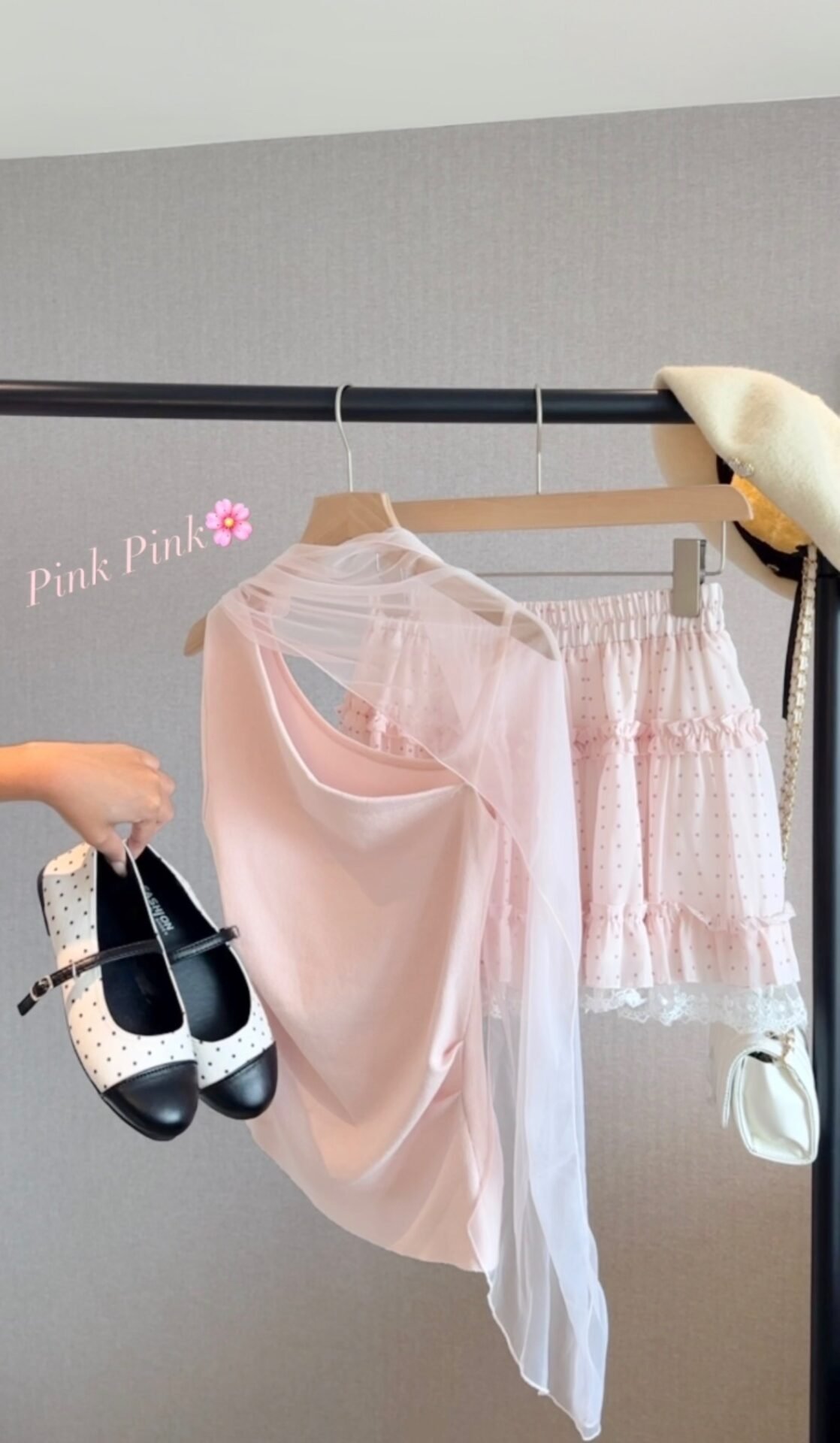 卷边设计加波点元素 甜妹上身吧!简单搭小背心就好看了🩷