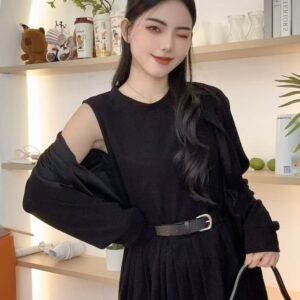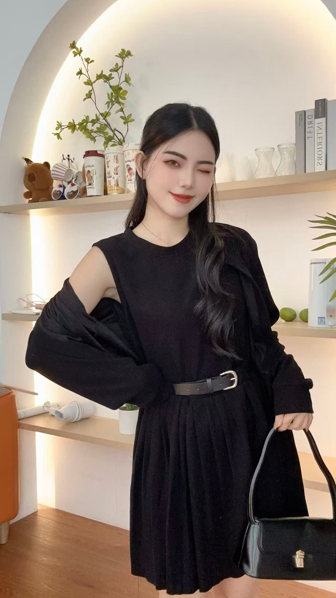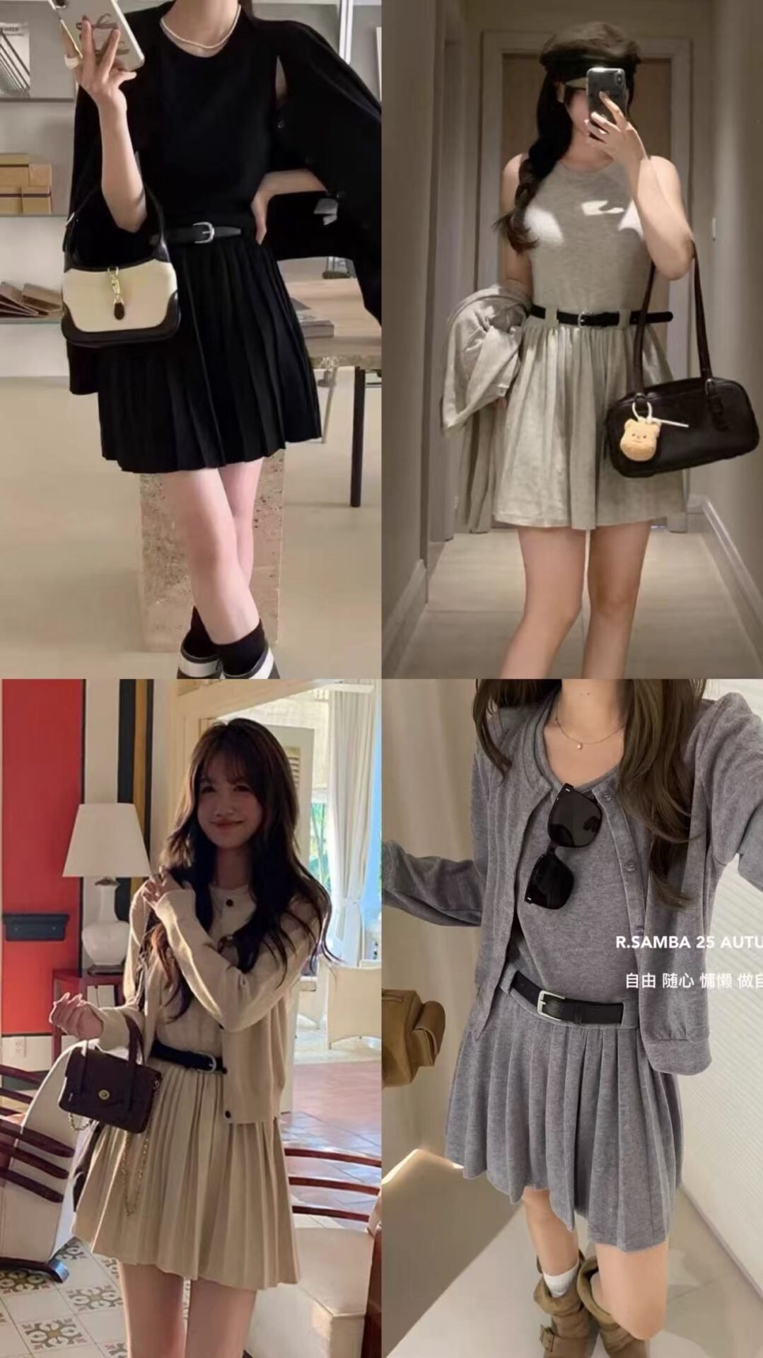 裙子上身版型很漂亮哦!有点复古感 还送腰带哈🖤