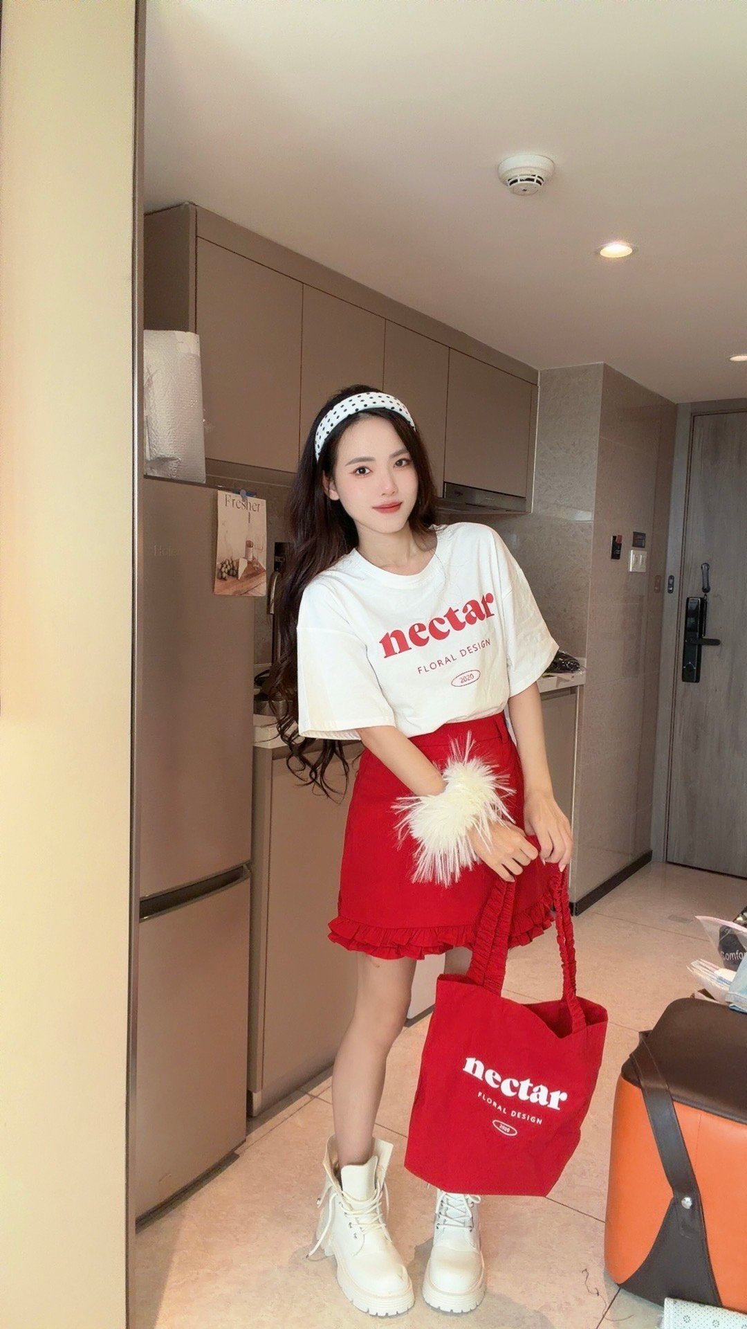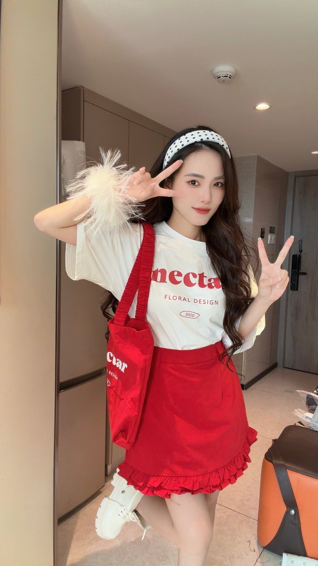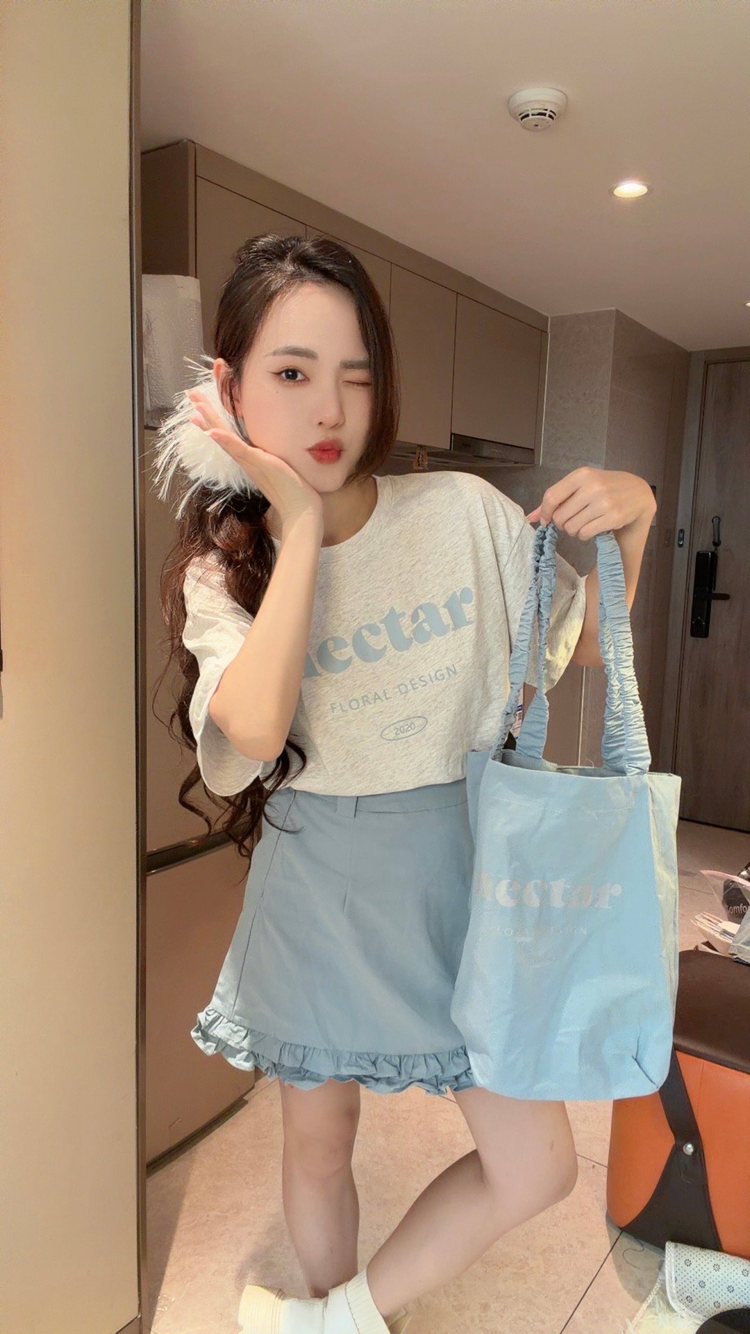 韩妞感上衣配上木耳边短裙、简直不要太甜🌷