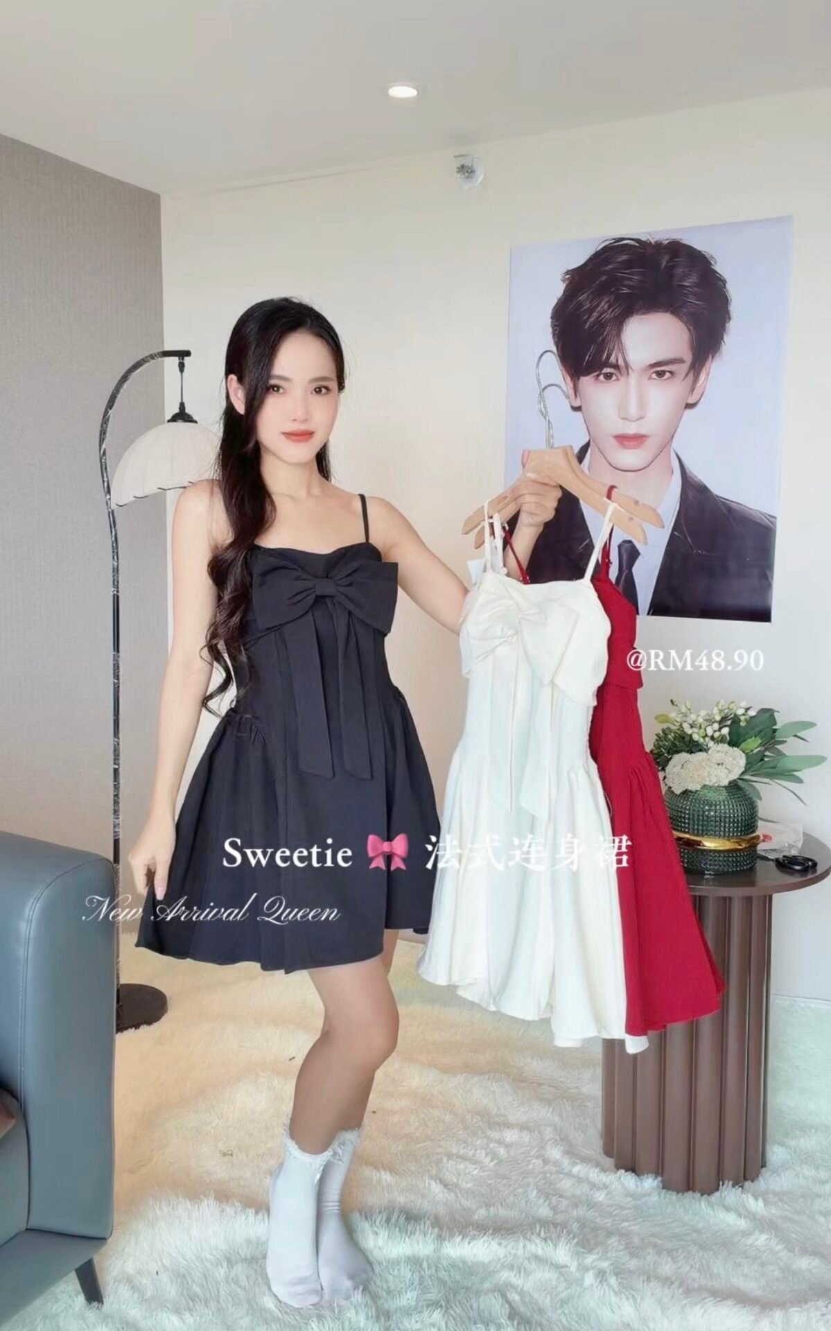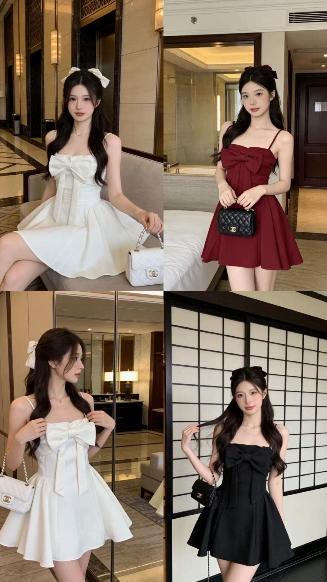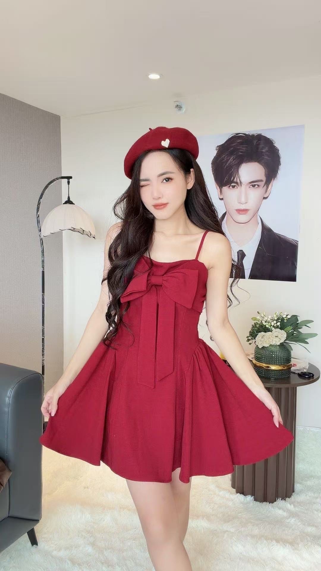 最吸睛的就是胸前的大蝴蝶结呀😍法式氛围感up 酒红真的很高级💗