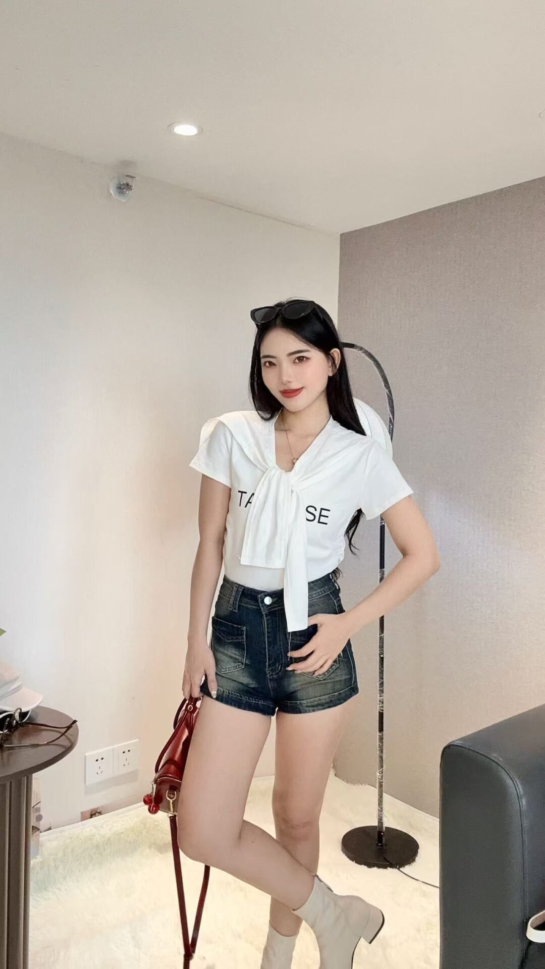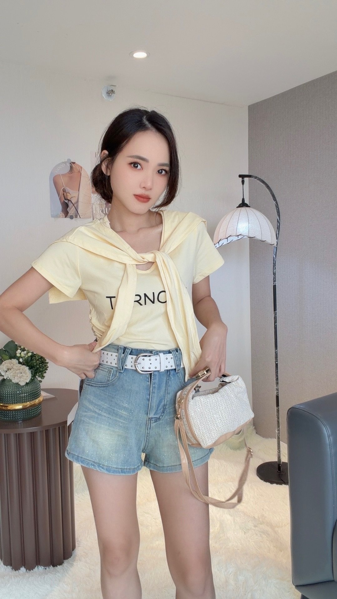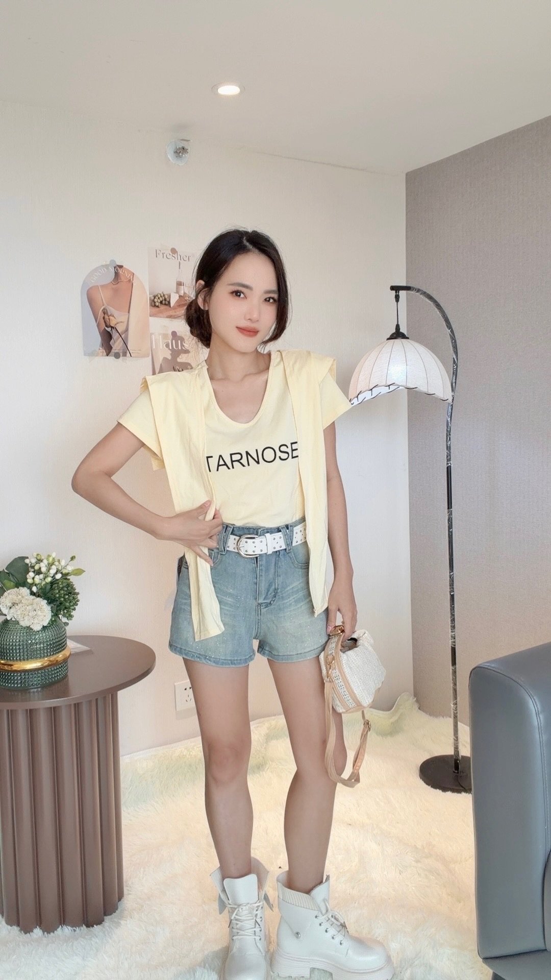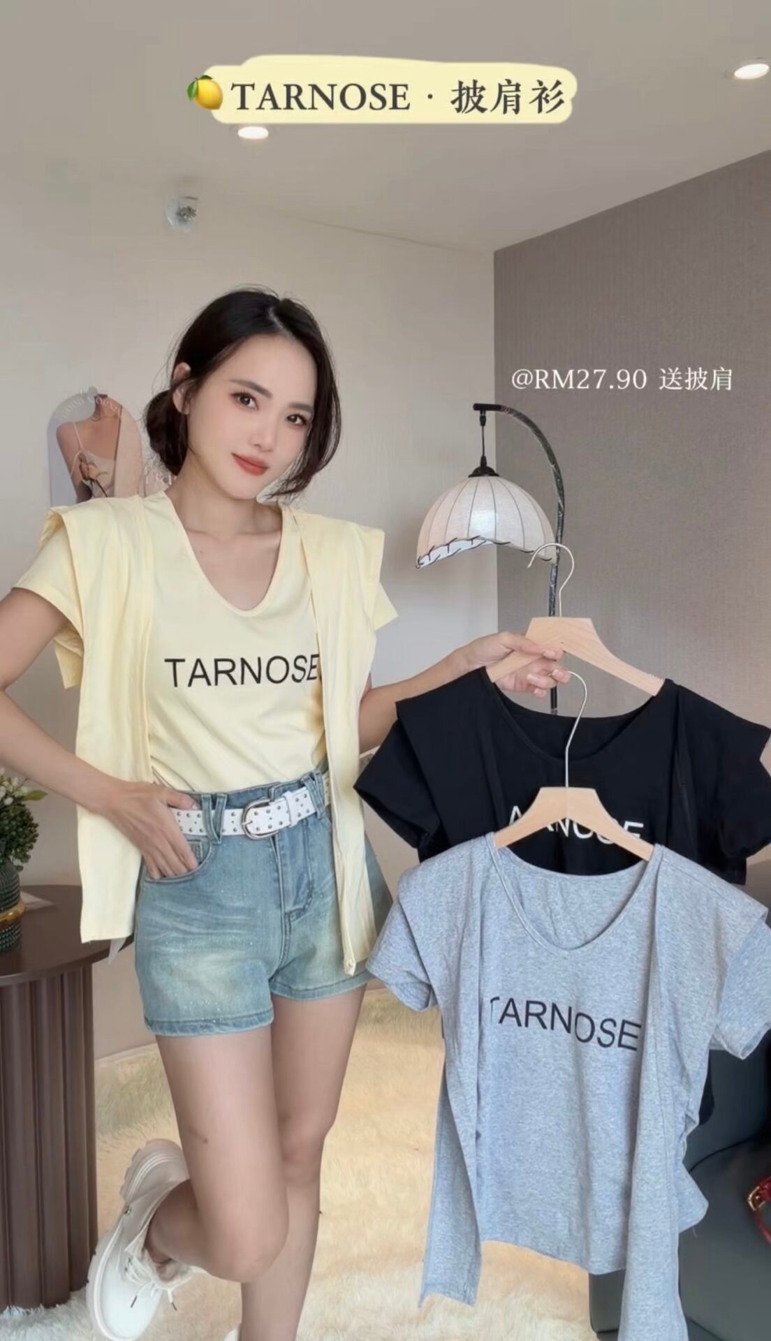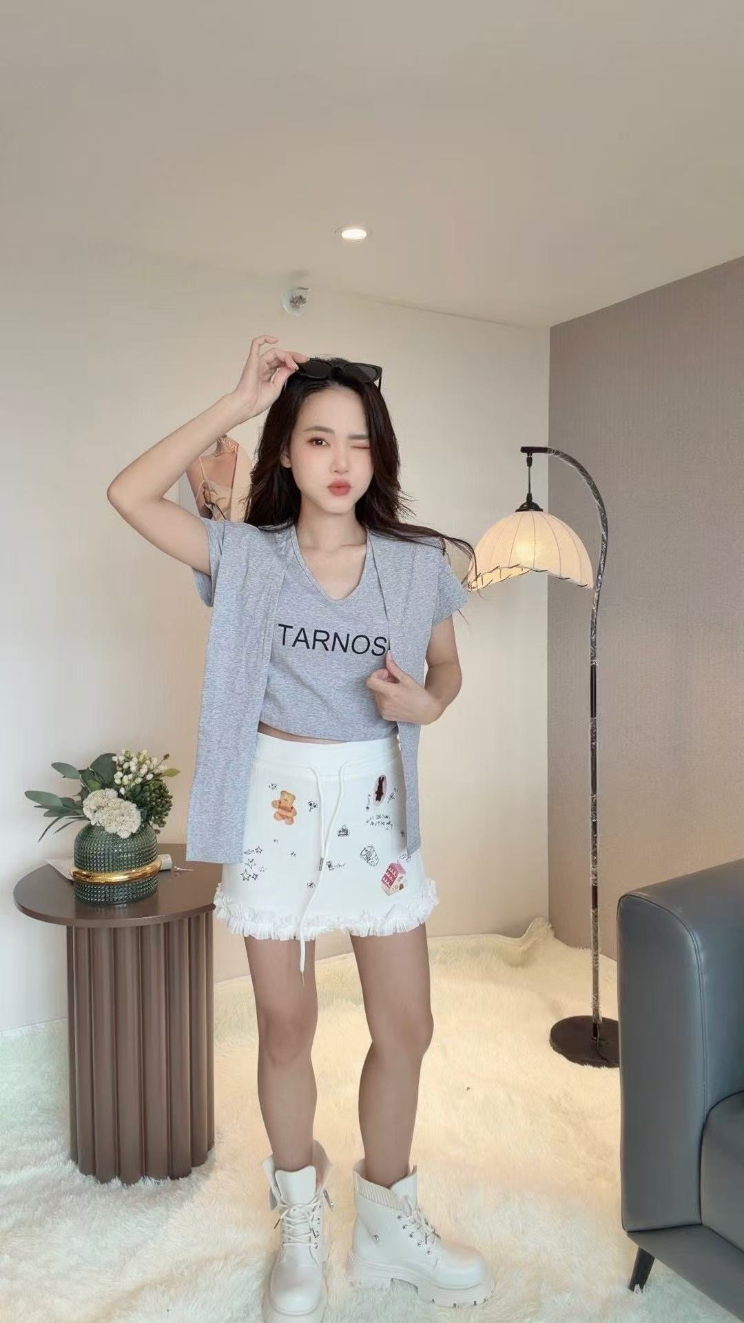 韩系字母款Tee 搭配披肩很减龄!料子好好穿